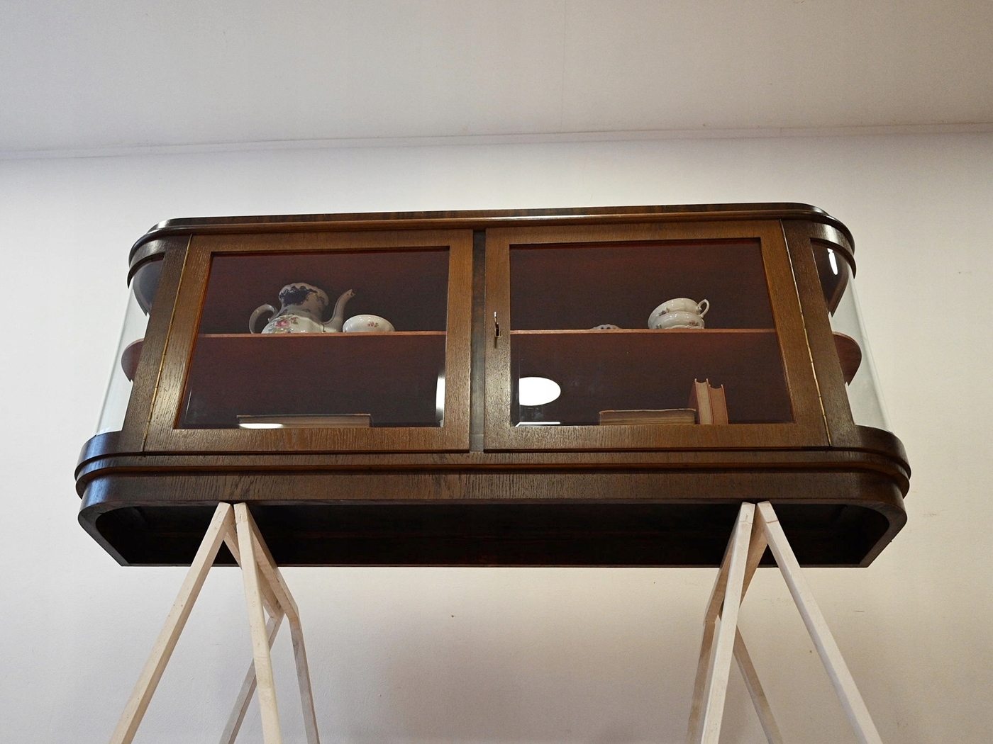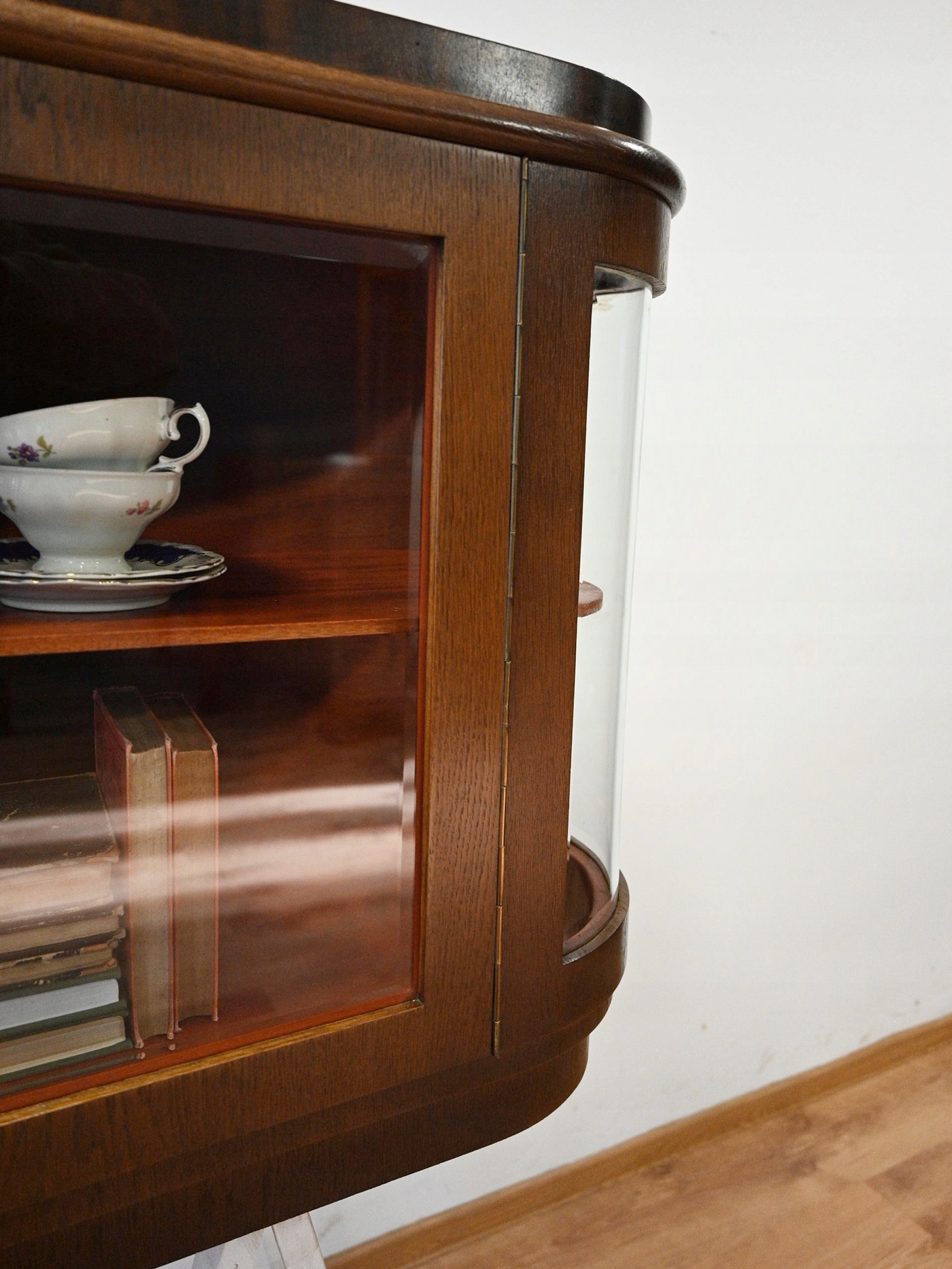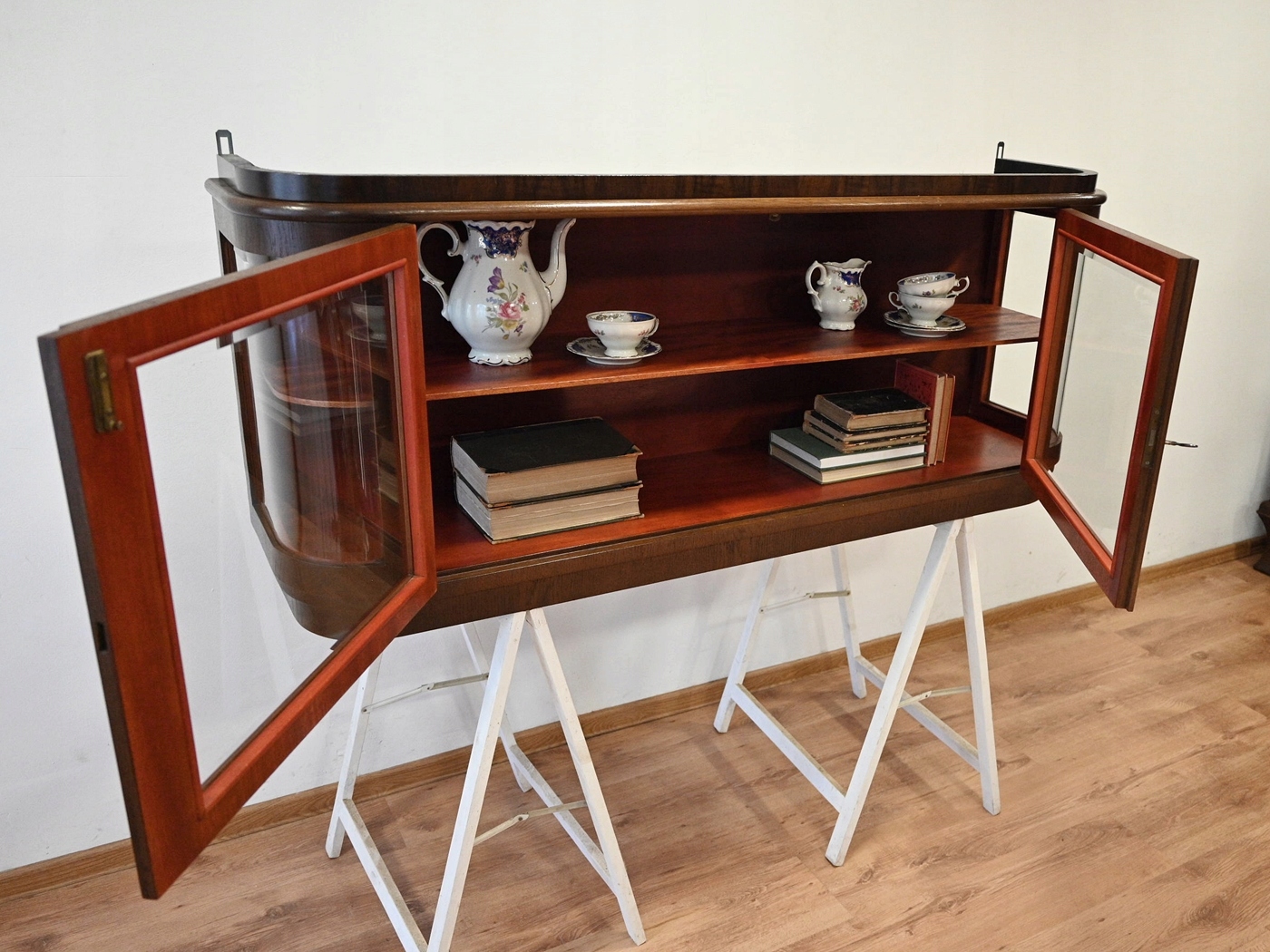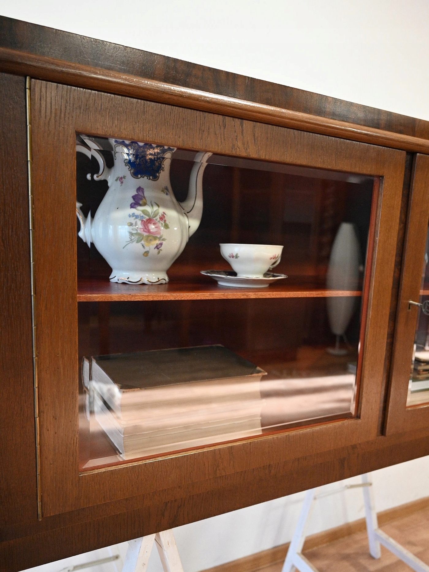 Дуже хороший стан. Меблі готові до використання. Оновлено зовнішні поверхні та інтер’єр меблів. Меблі вже старі, а сліди минулого, які не впливають на їх естетичне сприйняття, є доказом автентичності меблів. Шафу можна відразу поставити в квартиру.