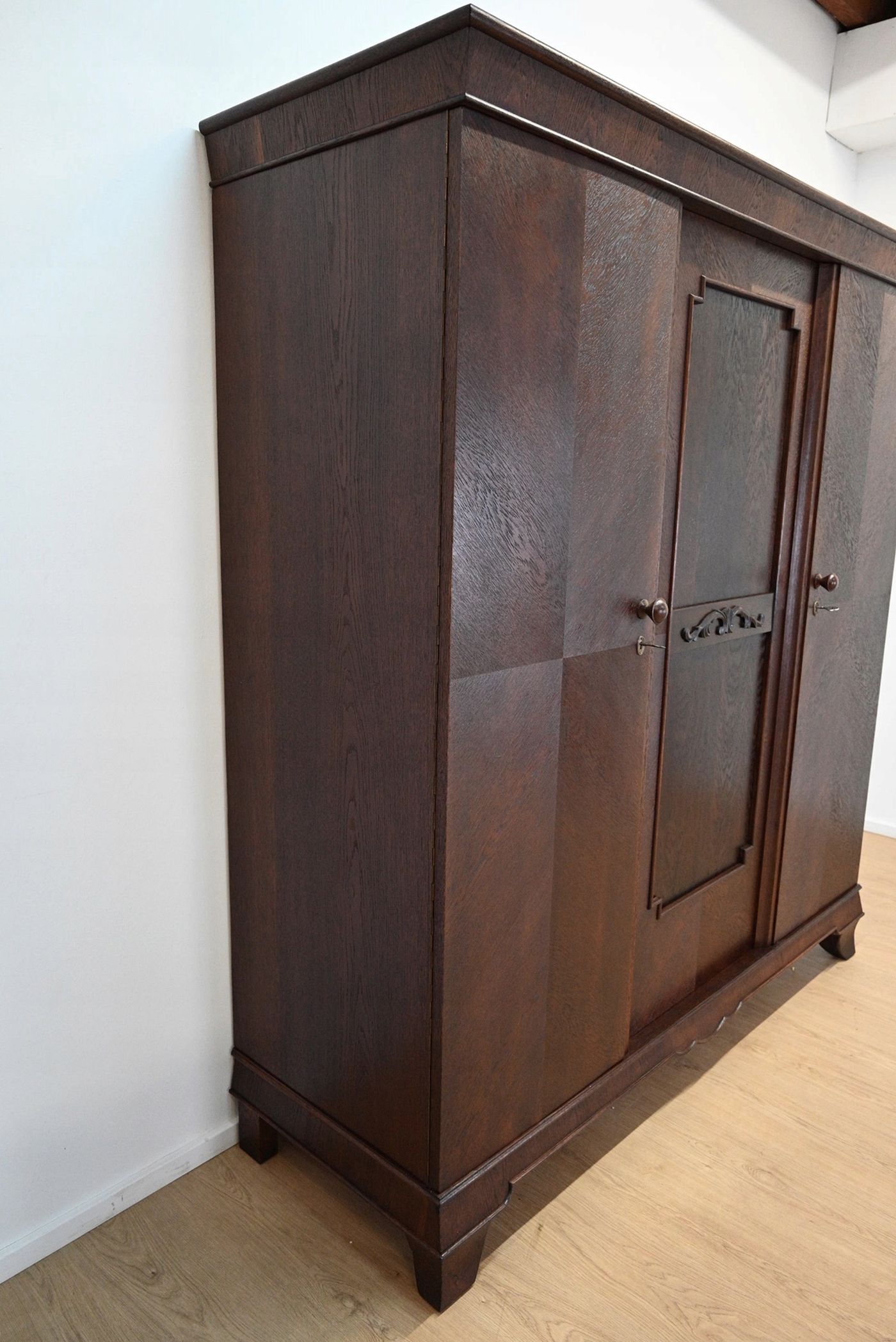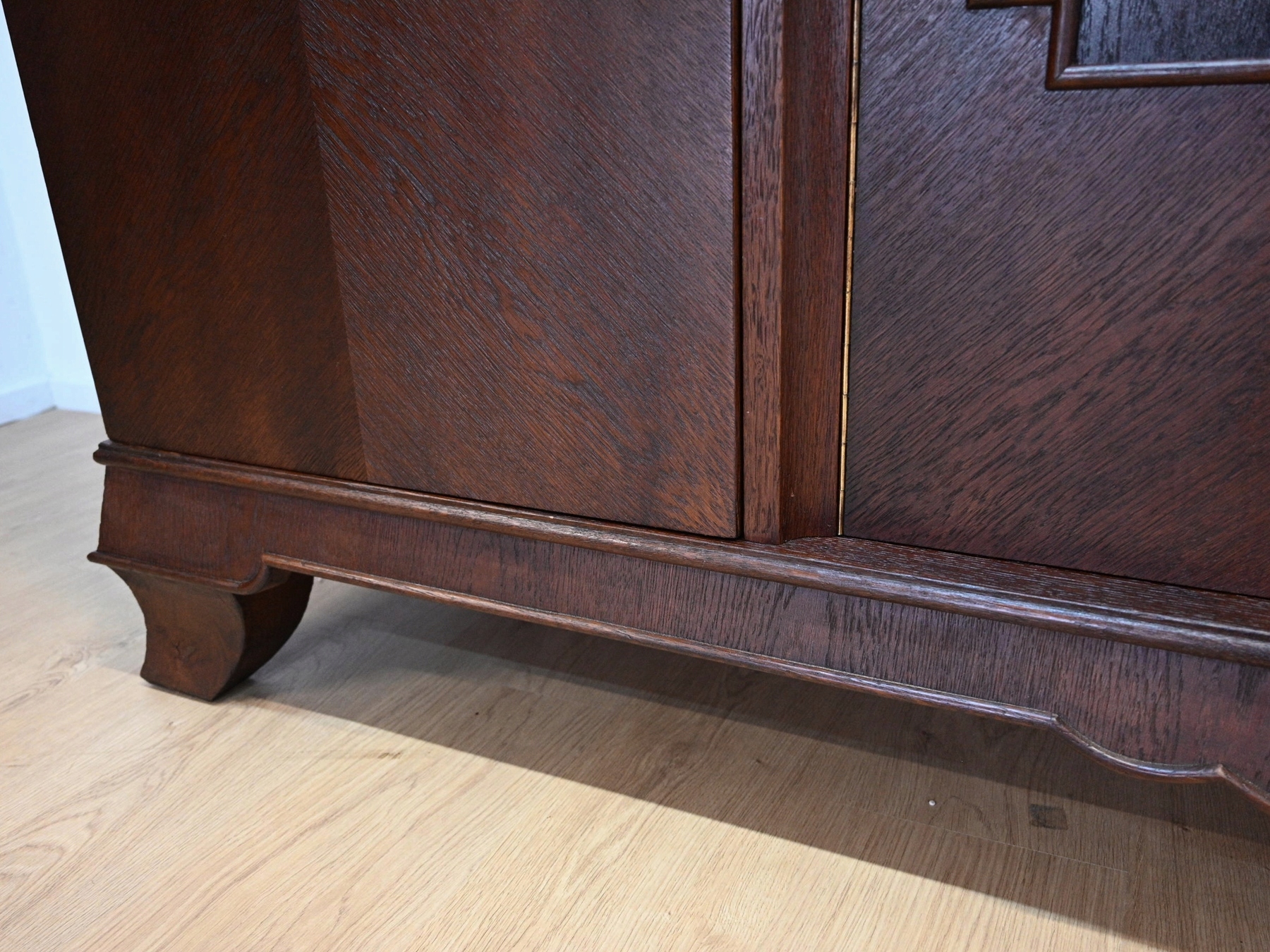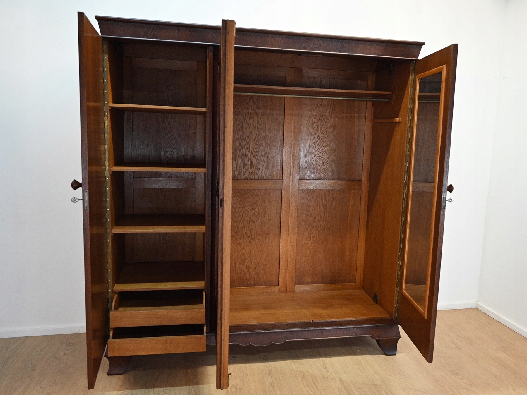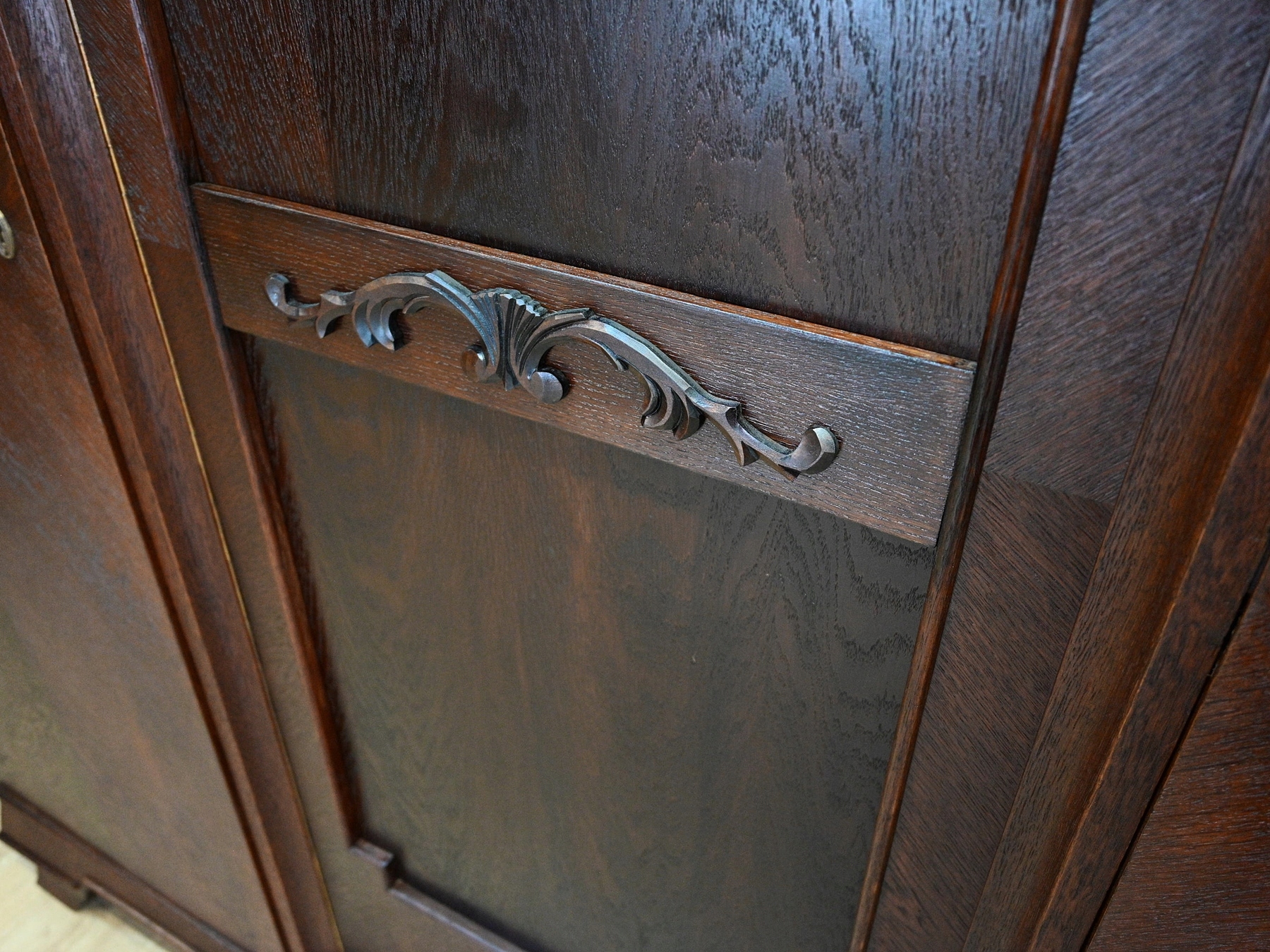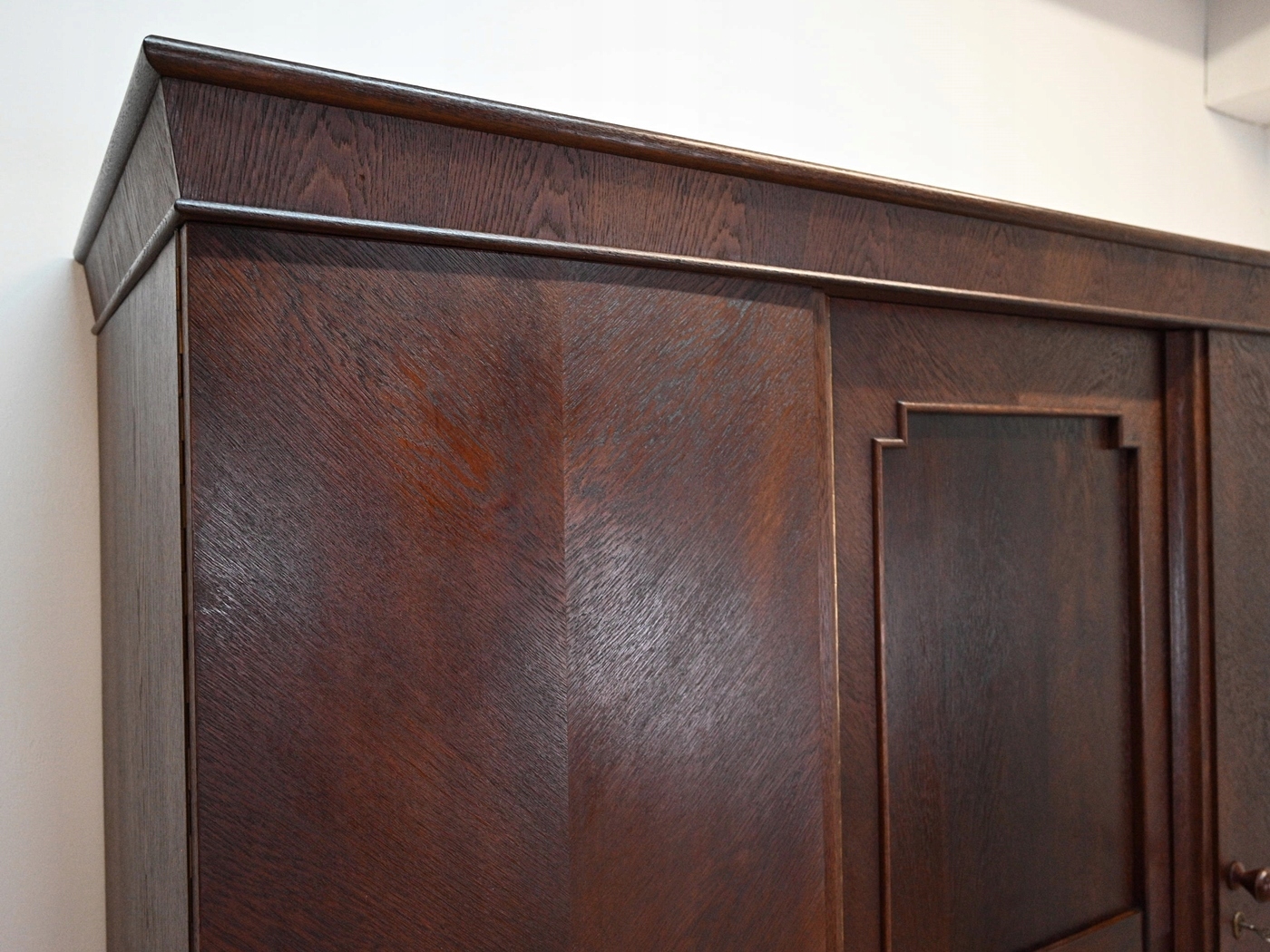 Дуже хороший стан. Меблі готові до використання. Оновлено зовнішні поверхні та інтер’єр меблів. Меблі вже старі, а сліди минулого, які не впливають на їх естетичне сприйняття, є доказом автентичності меблів. Шафу можна відразу заносити в квартиру.