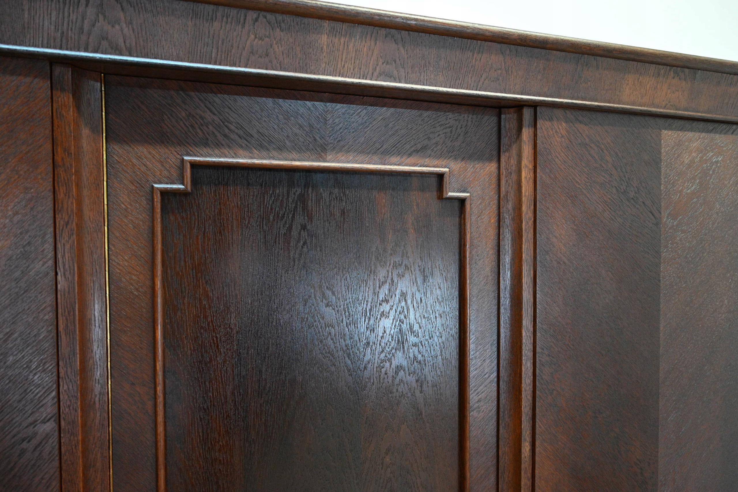 Він повністю виготовлений з деревини, облицьований дубовим шпоном.