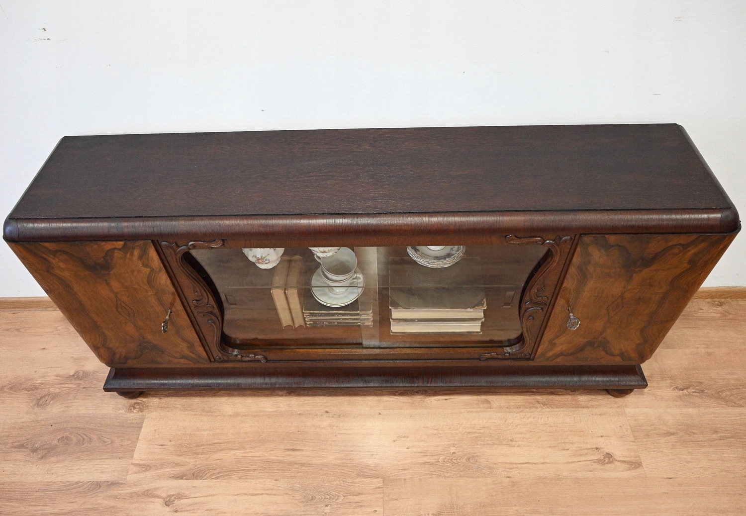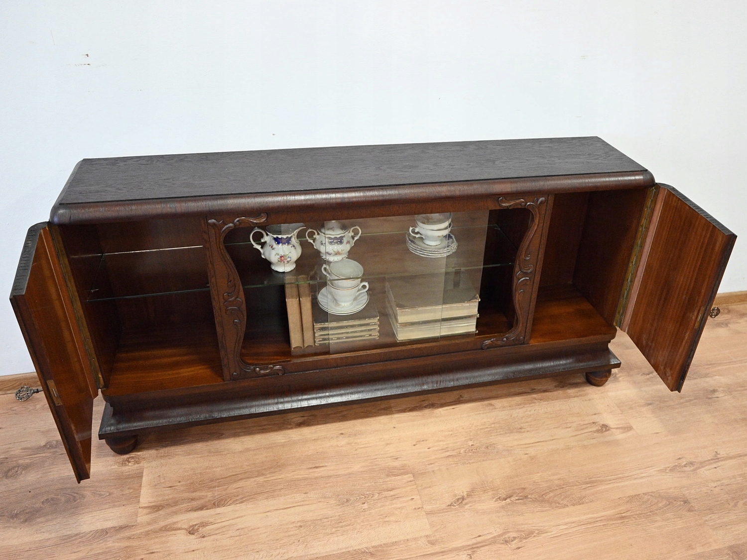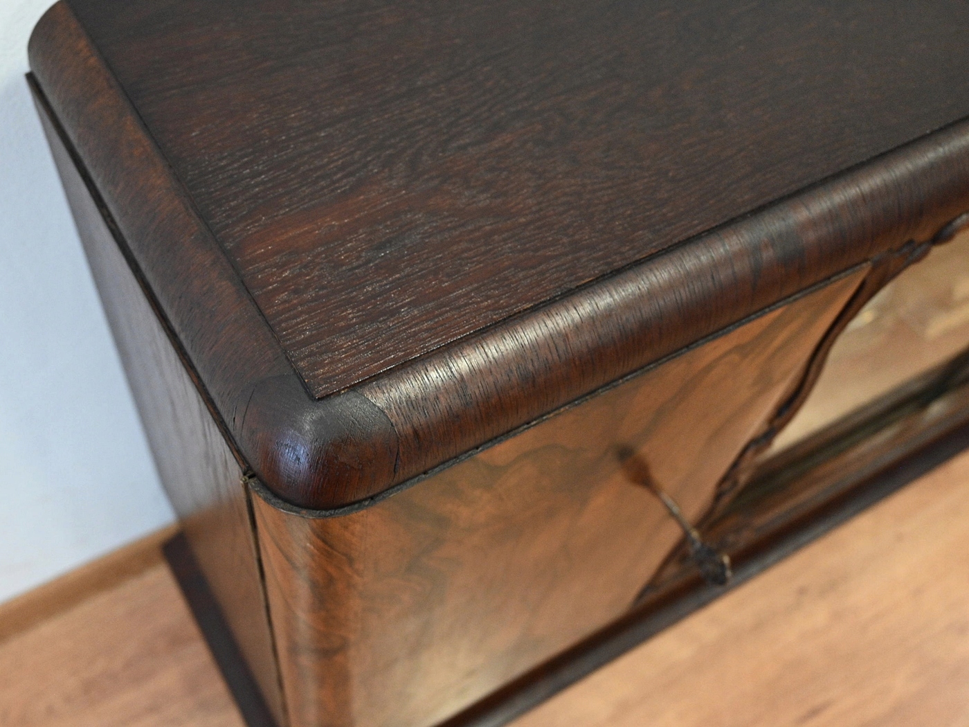 Дуже хороший стан. Меблі готові до використання. Оновлено зовнішні поверхні та інтер’єр меблів. Меблі вже старі, а сліди минулого, які не впливають на їх естетичне сприйняття, є доказом автентичності меблів. Шафу можна відразу заселяти в квартиру.