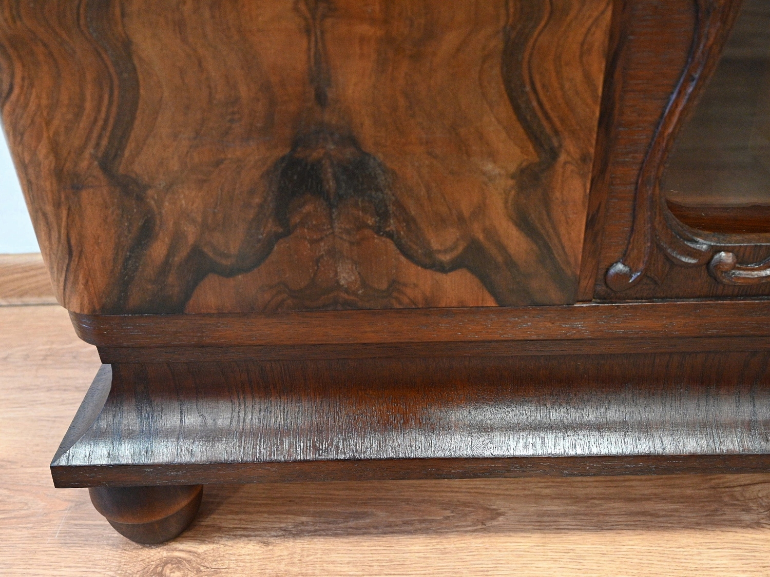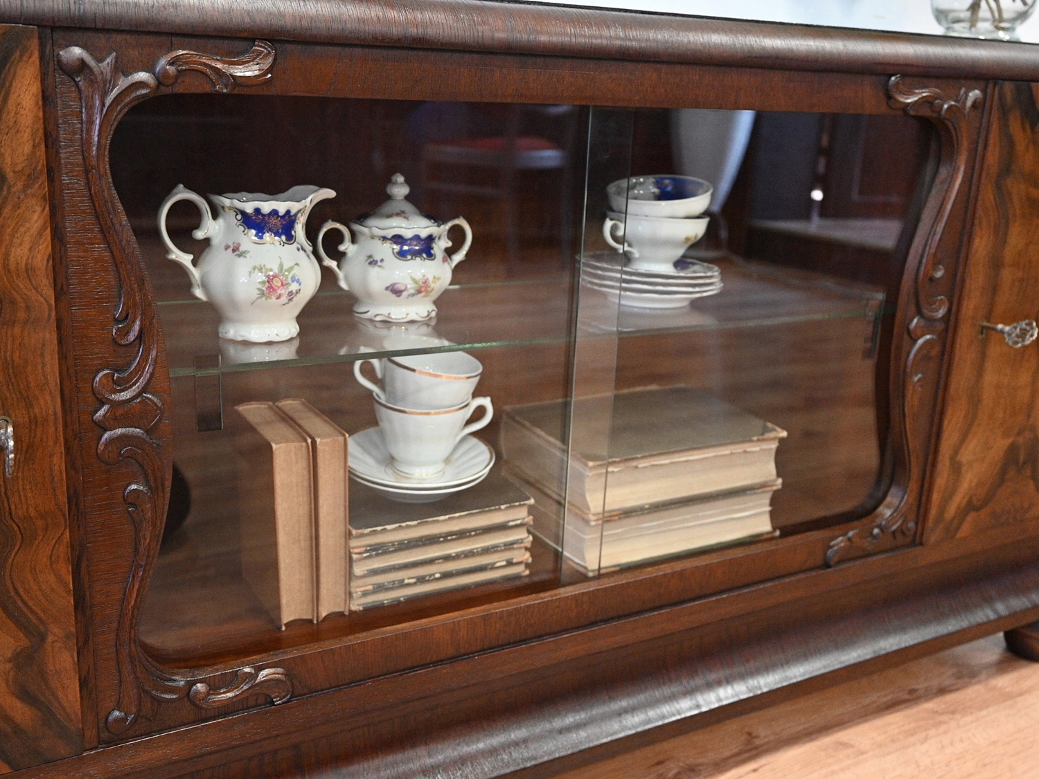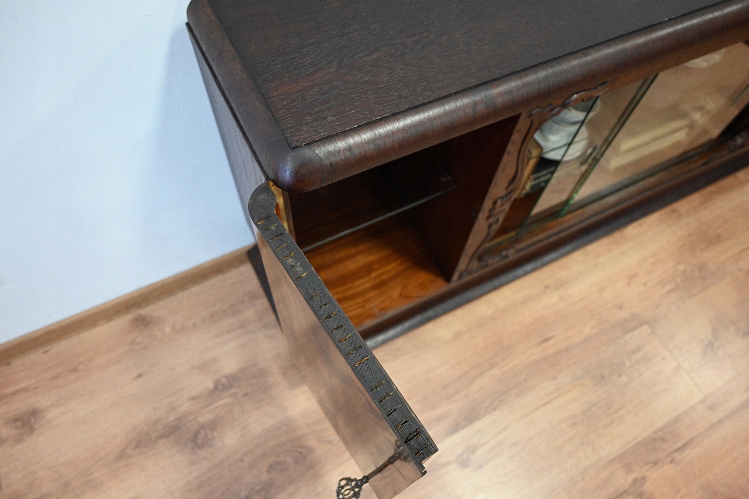 Дуже хороший стан. Меблі готові до використання. Оновлено зовнішні поверхні та інтер’єр меблів. Меблі вже старі, а сліди минулого, які не впливають на їх естетичне сприйняття, є доказом автентичності меблів. Шафу можна відразу заселяти в квартиру.
