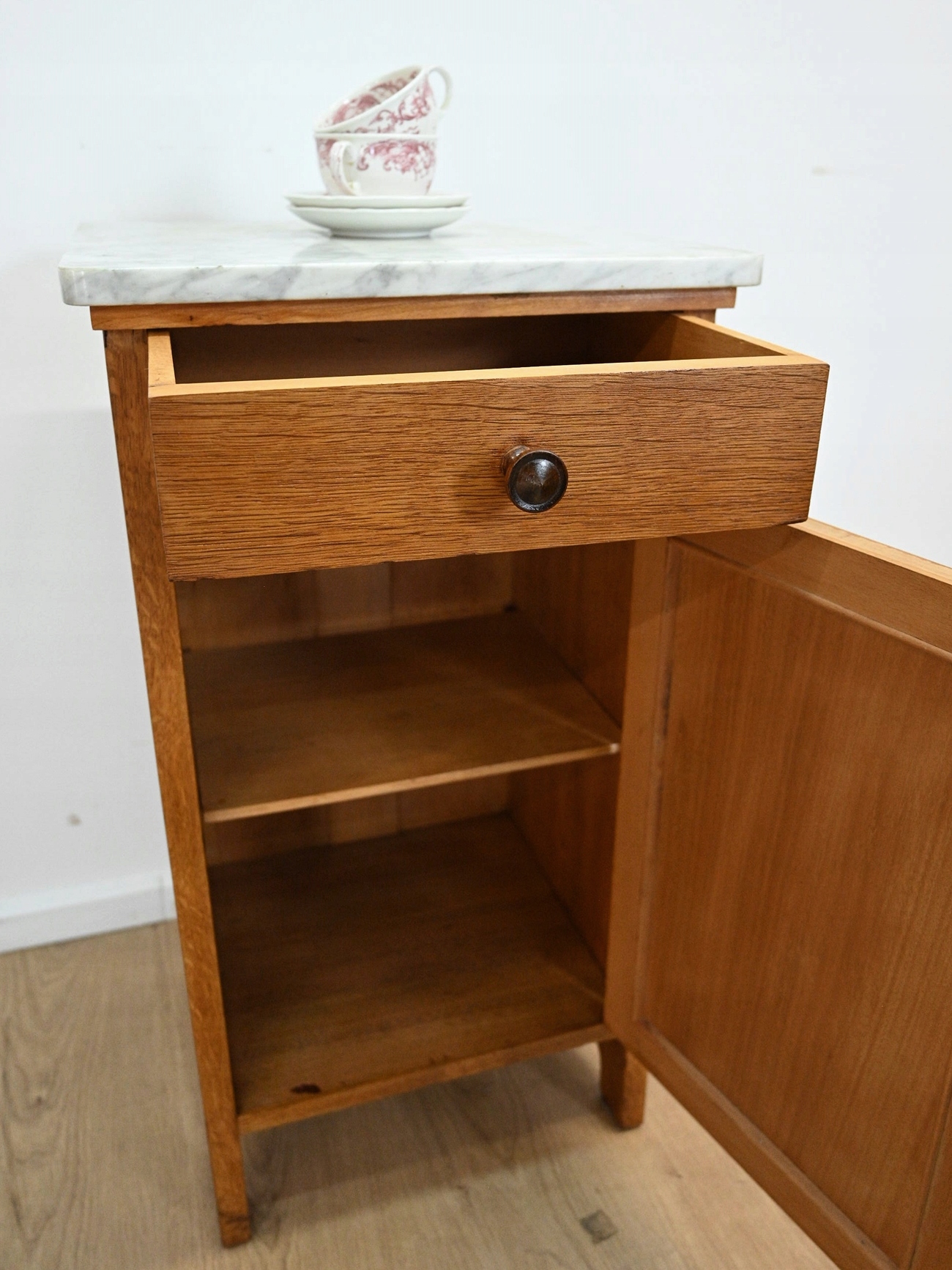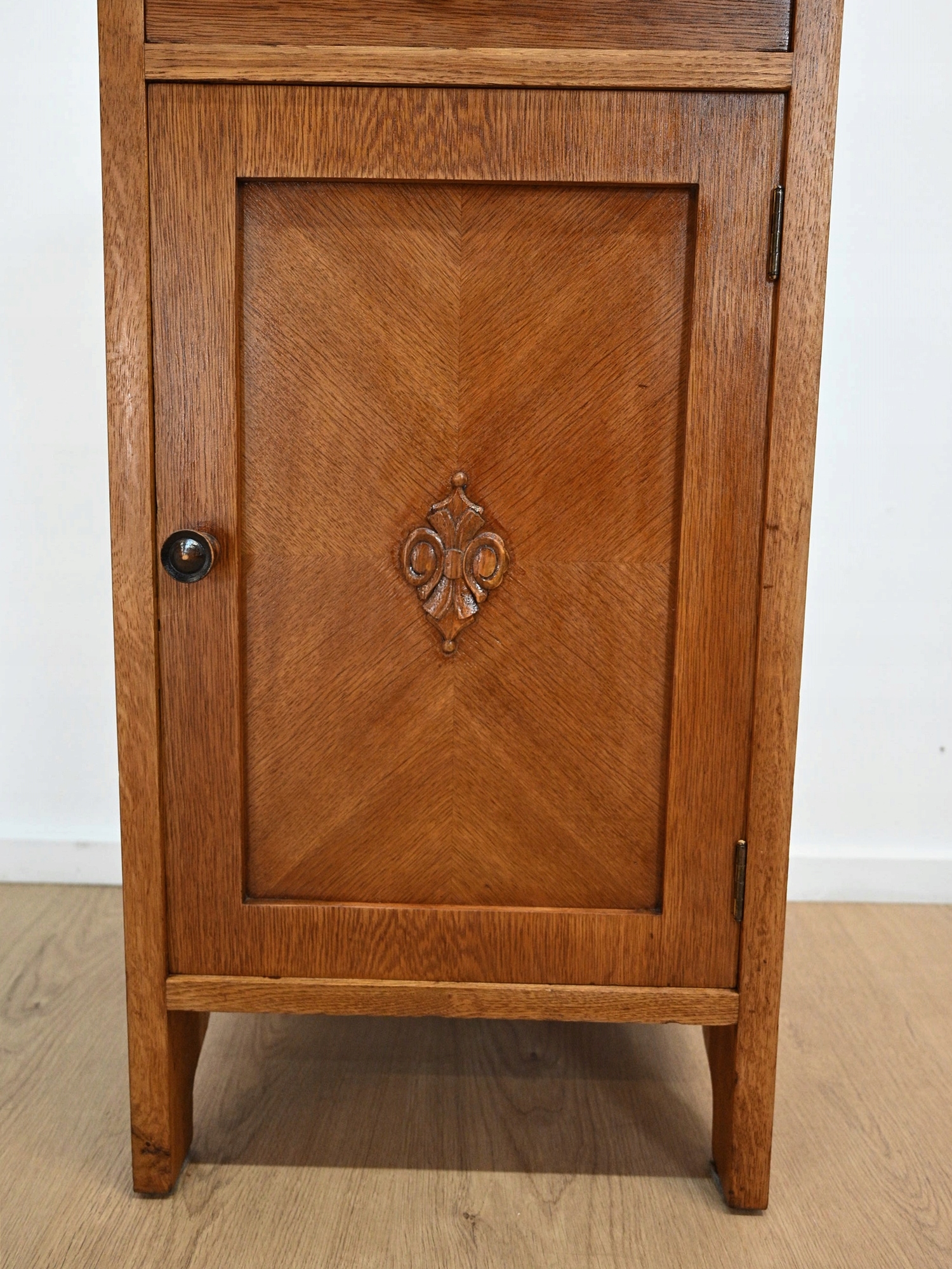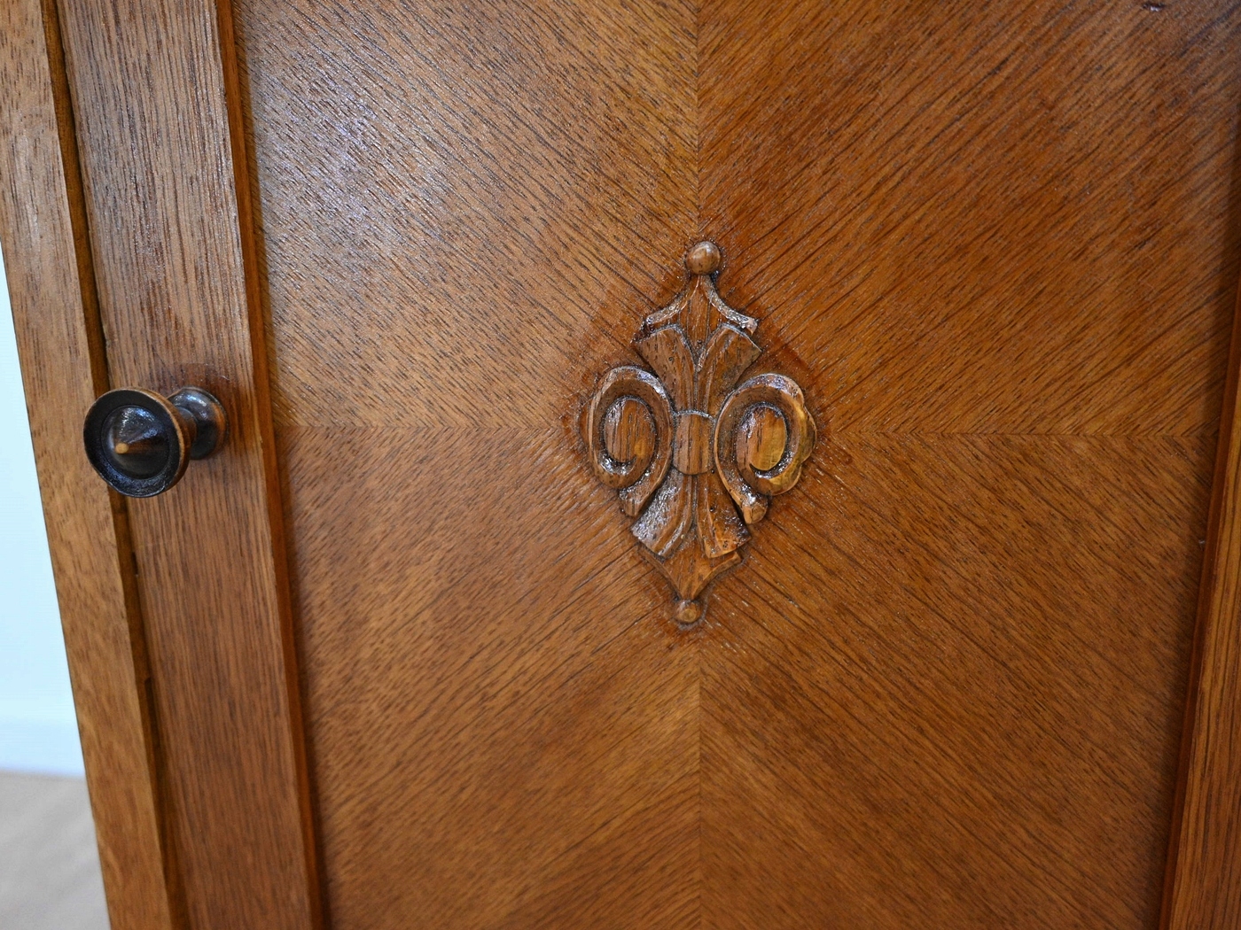 Дуже хороший стан. Меблі готові до використання. Оновлено зовнішні поверхні та інтер’єр меблів. Меблі вже старі, а сліди минулого, які не впливають на їх естетичне сприйняття, є доказом автентичності меблів. Шафу можна відразу поставити в квартиру.