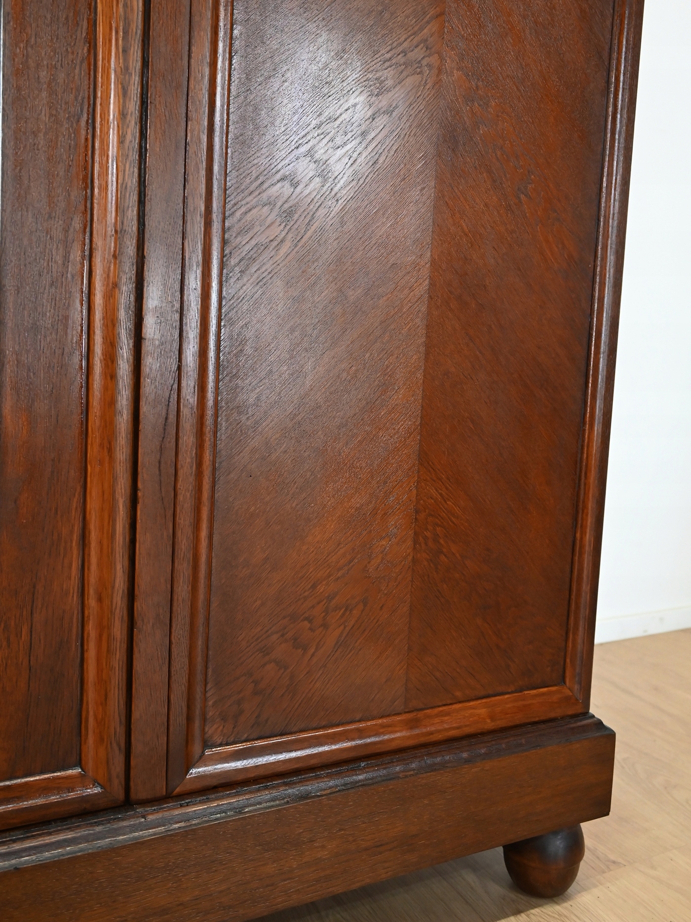 Дуже хороший стан. Меблі готові до використання. Оновлено зовнішні поверхні та інтер’єр меблів. Меблі вже старі, а сліди минулого, які не впливають на їх естетичне сприйняття, є доказом автентичності меблів. Шафу можна відразу заносити в квартиру.