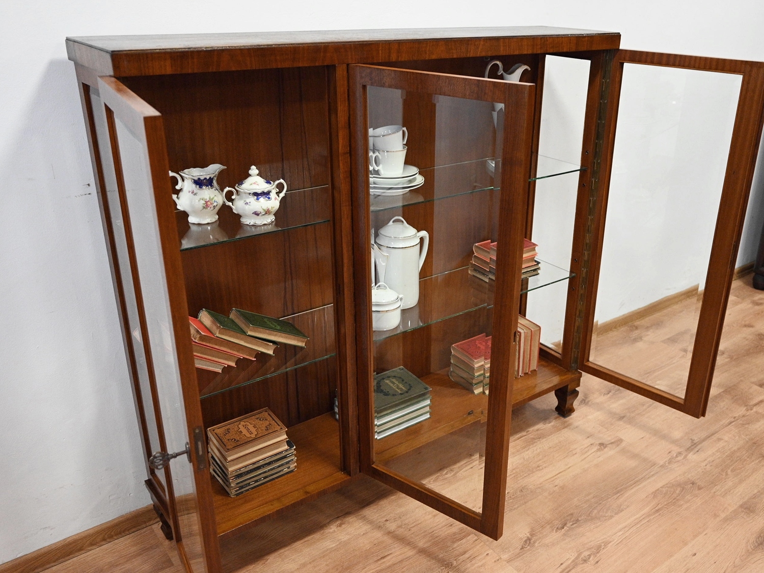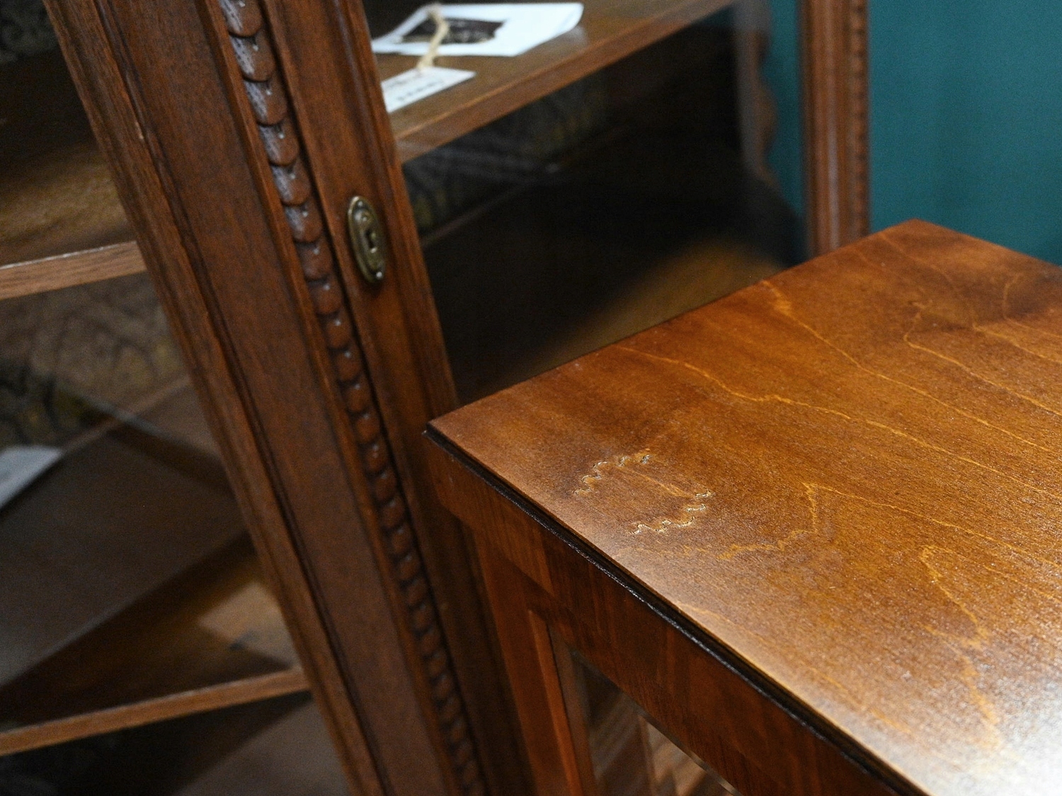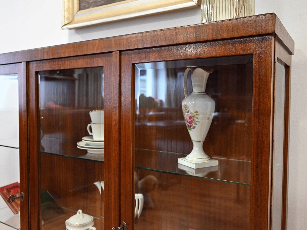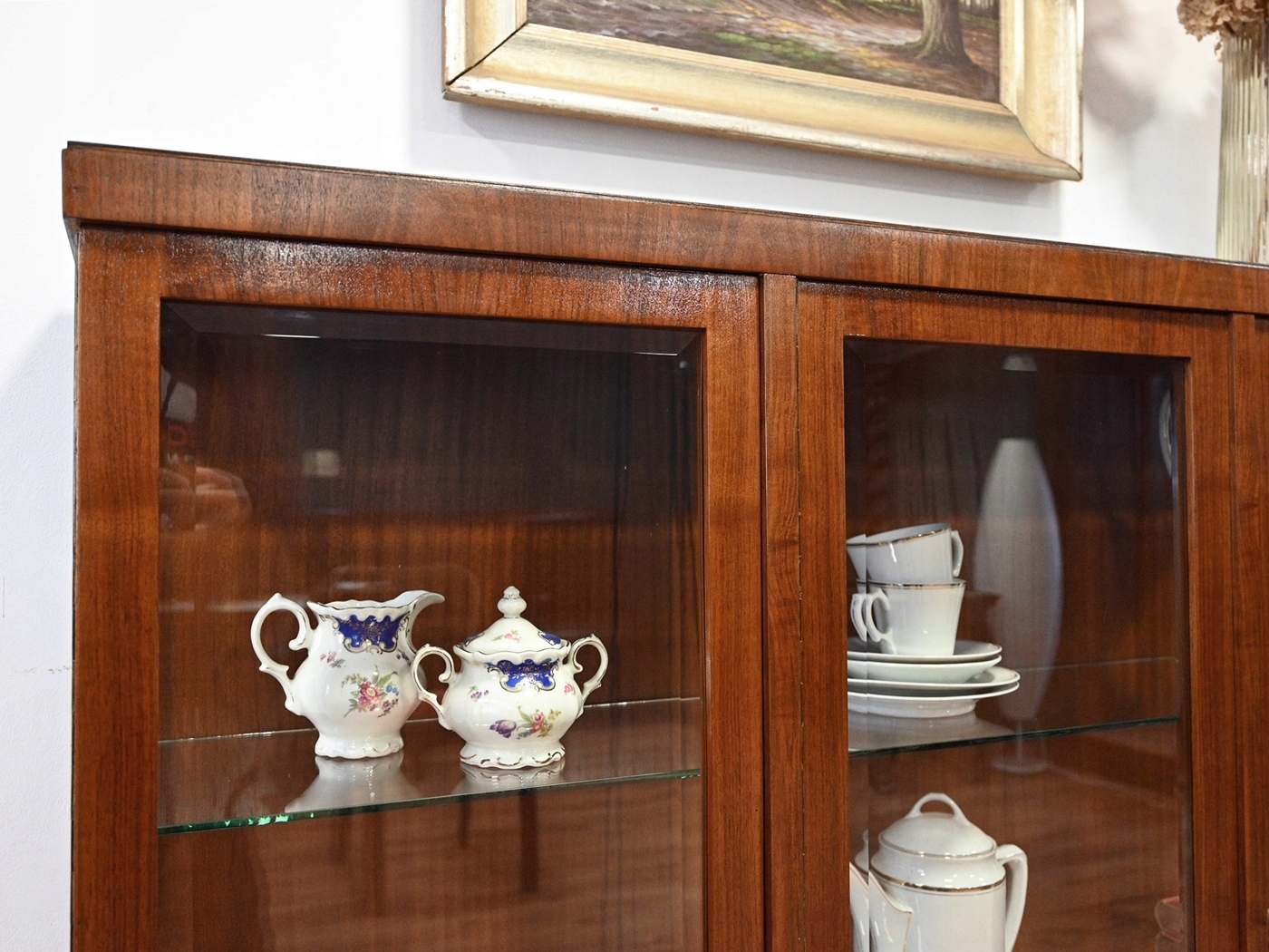 МЕБЛІ ПІД СТАРОВИНУ, довга, низька шафа, скло з фаскою