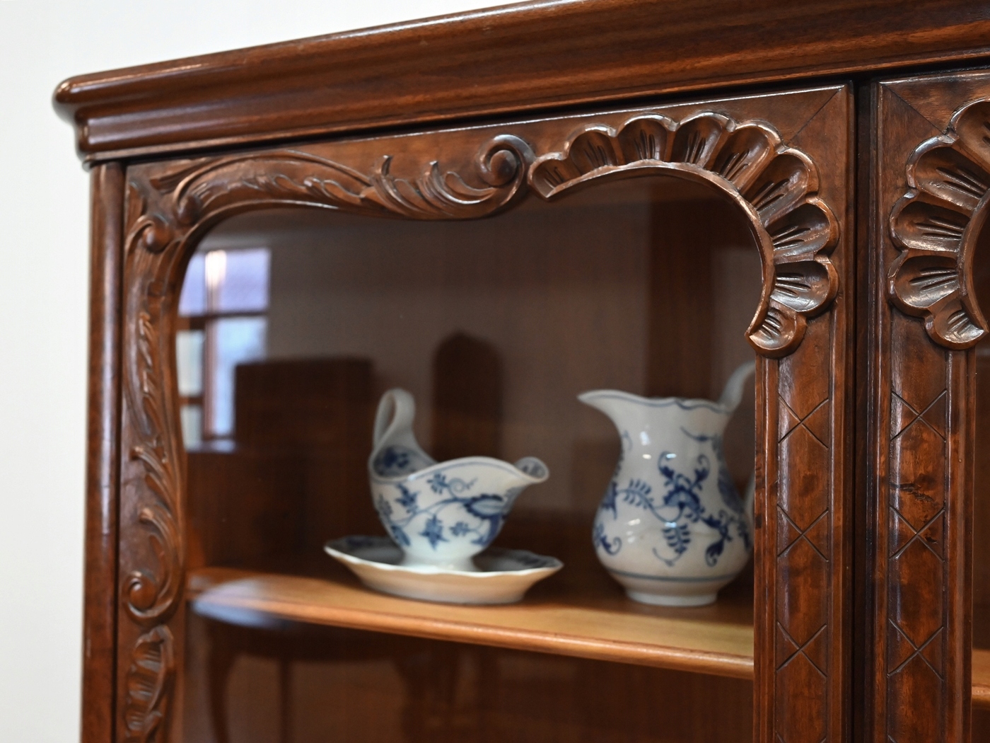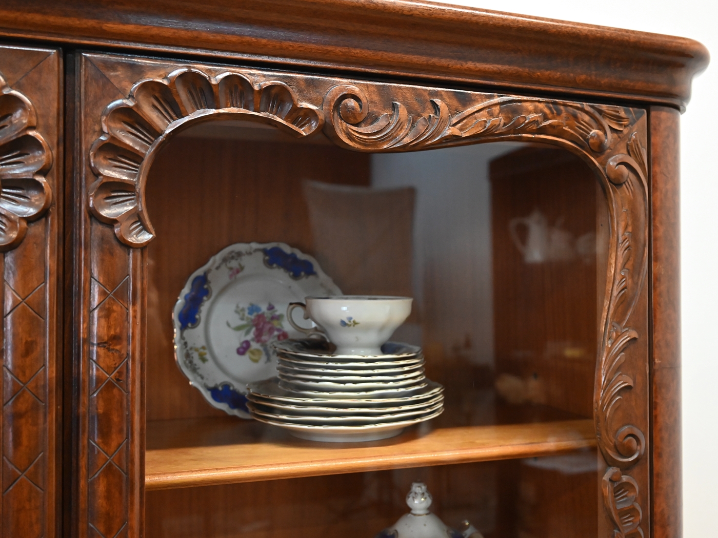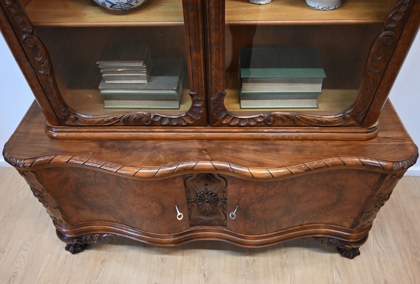 Декоративна шафа-вітрина з волоського горіха.