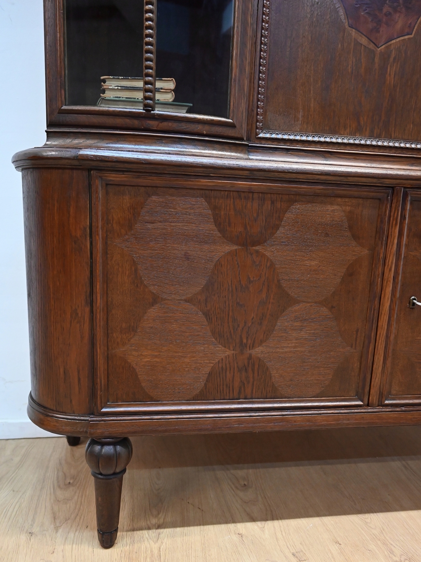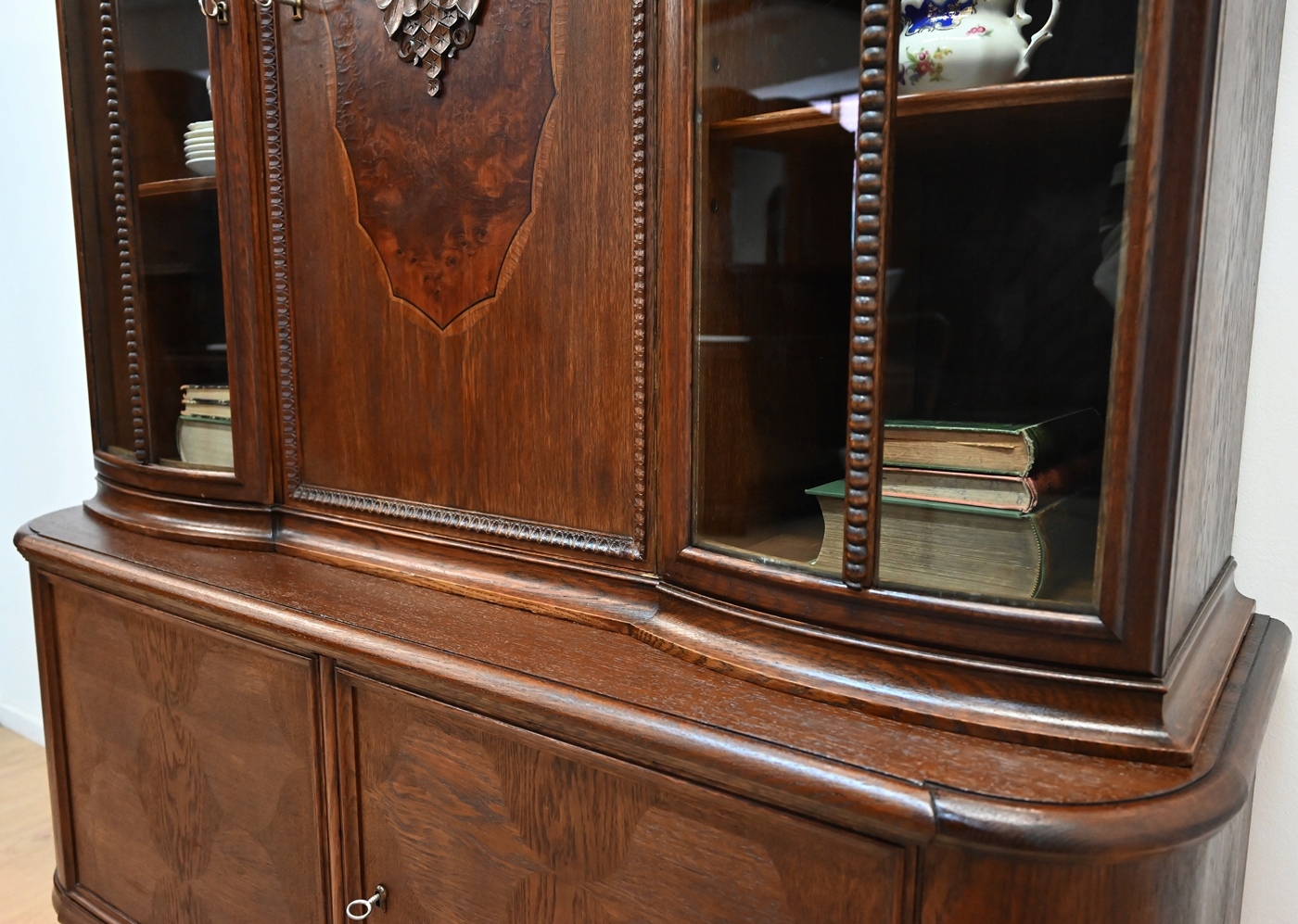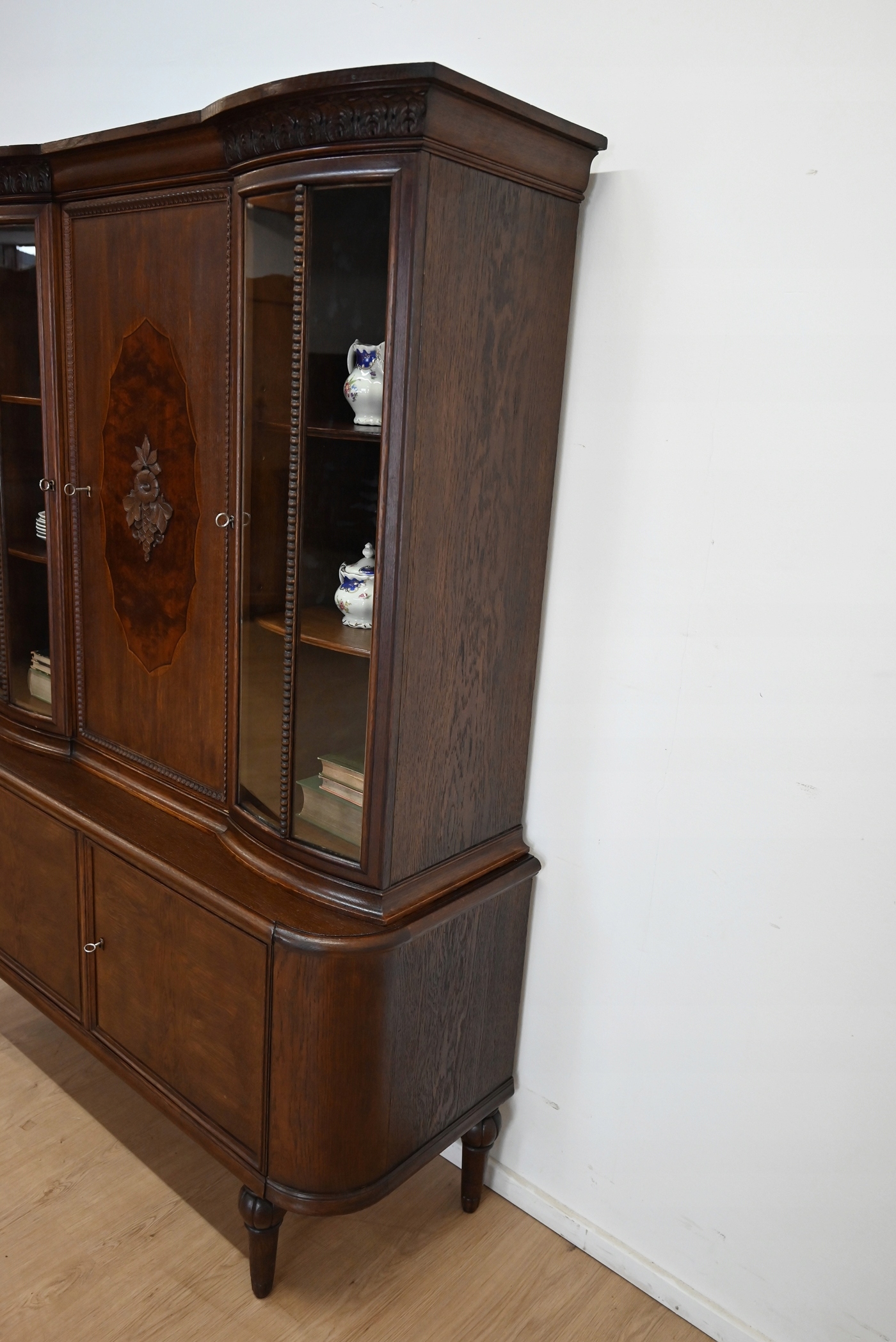 Дуже хороший стан. Меблі готові до використання. Оновлено зовнішні поверхні та інтер’єр меблів. Меблі вже старі, а сліди минулого, які не впливають на їх естетичне сприйняття, є доказом автентичності меблів. Вітрину можна відразу поставити в квартиру.