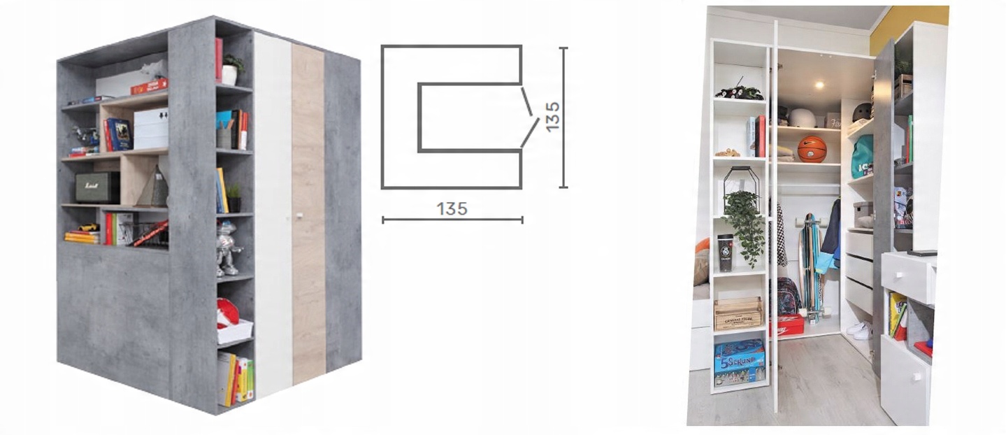 Цілком сучасний і функціональний молодіжний комплект SIGMA чудово впишеться в кімнату вимогливого, стильного підлітка. Меблі з ламінованої плити найвищої якості дозволять вам насолоджуватися довговічністю протягом багатьох років - навіть при інтенсивній молодості. Додатково корпуси покриті кромками з ABS. Під час монтажу ми вирішуємо, з якого боку буде вхід.
