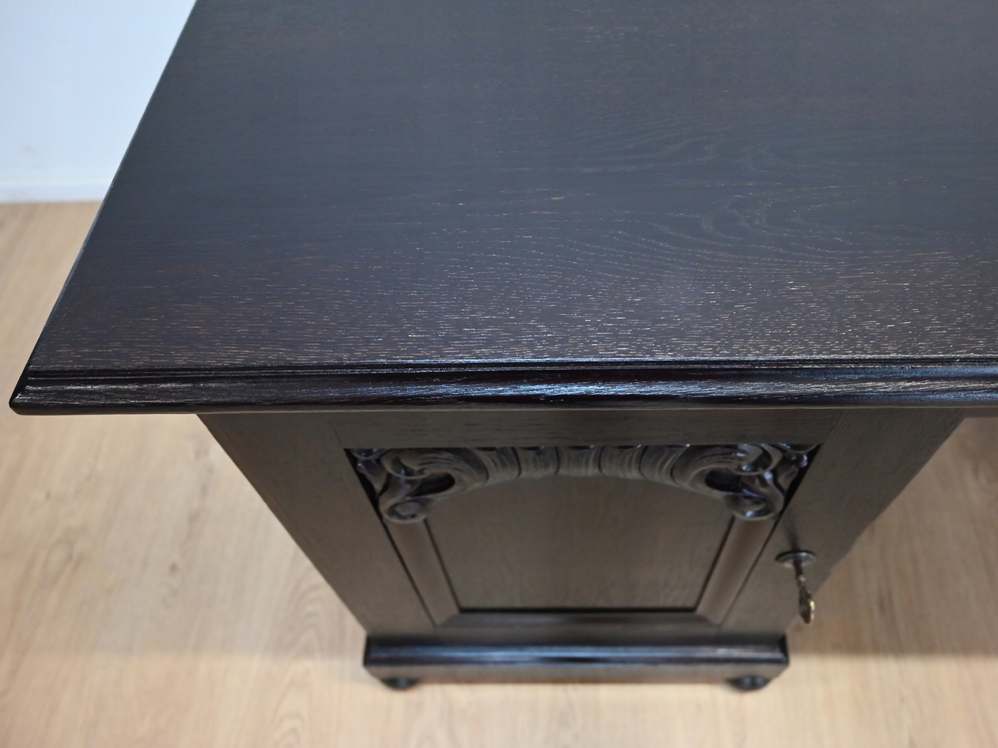 Дуже хороший стан. Меблі готові до використання. Оновлено зовнішні поверхні та інтер’єр меблів. Меблі вже старі, а сліди минулого, які не впливають на їх естетичне сприйняття, є доказом автентичності меблів. Стіл можна відразу поставити в квартиру.