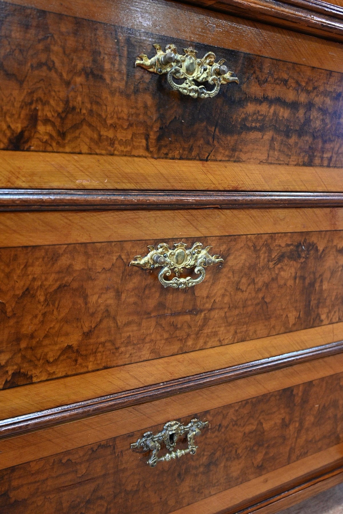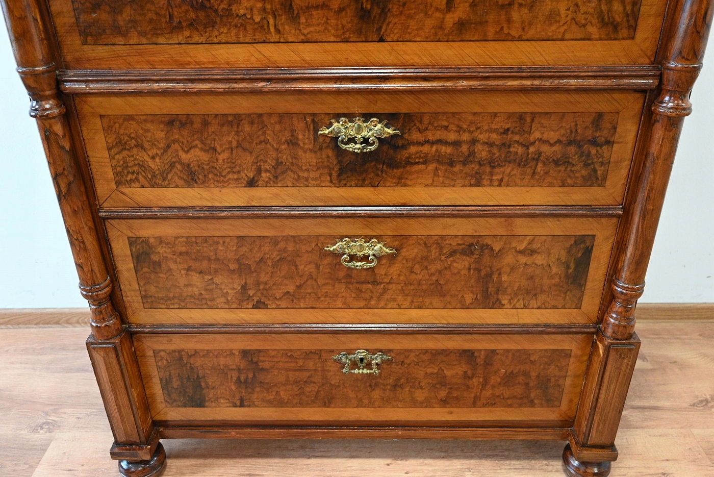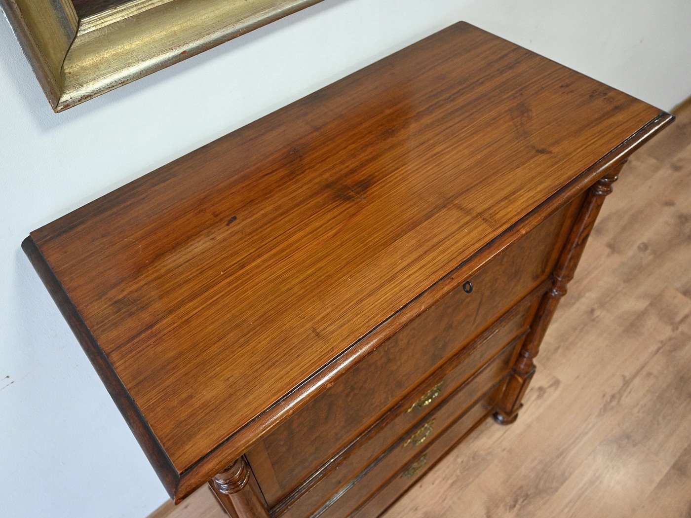 сліди кори жуків, невеликі кількості ззаду, дно. Меблі, просочені підготовкою проти корових жуків. Немає активного кори жуть.