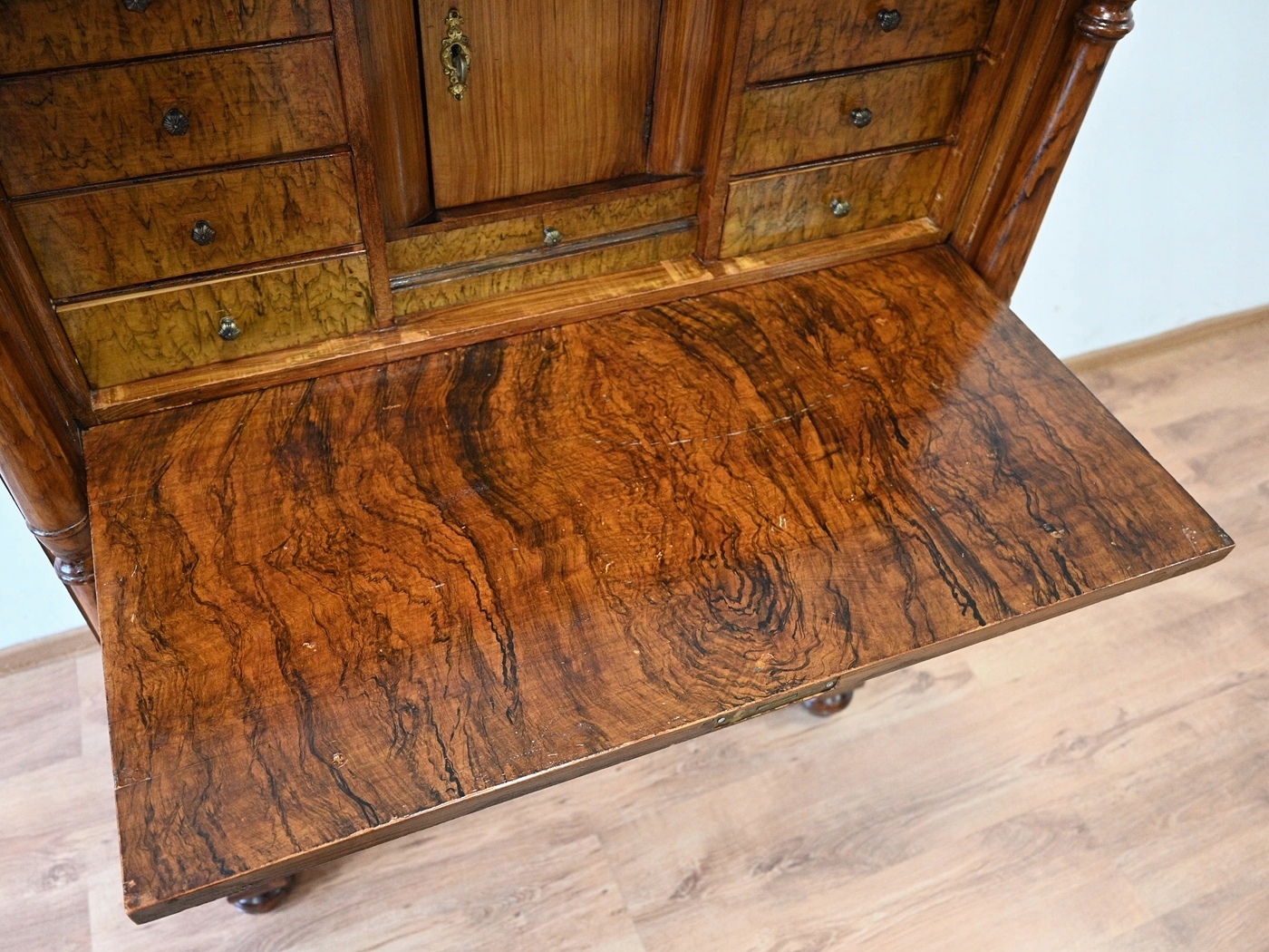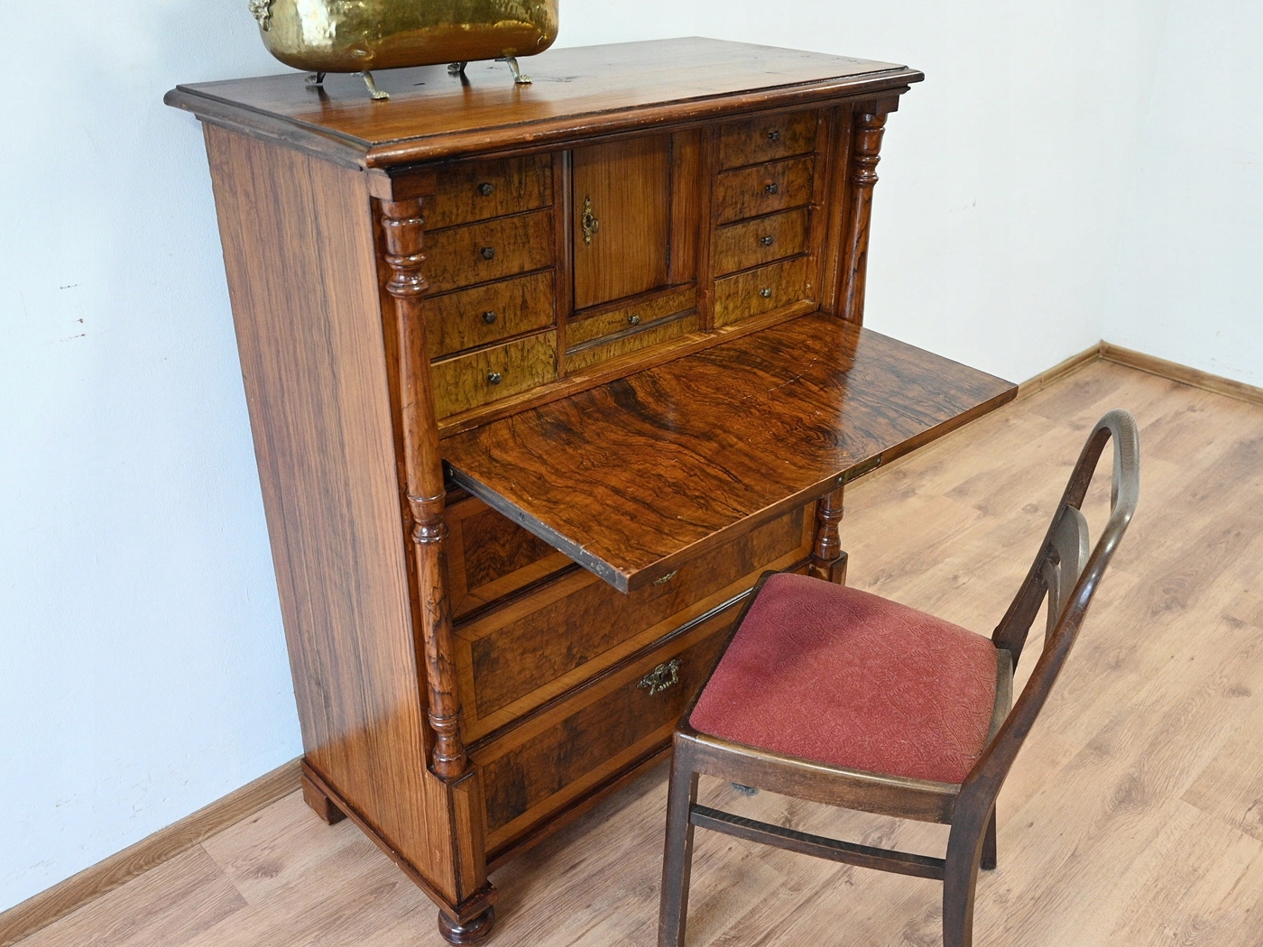 повністю виготовляється з дерева, поважного шпони. Меблі, підготовлені до використання, ви можете покласти її в квартиру. Невеликі вади, подряпини.