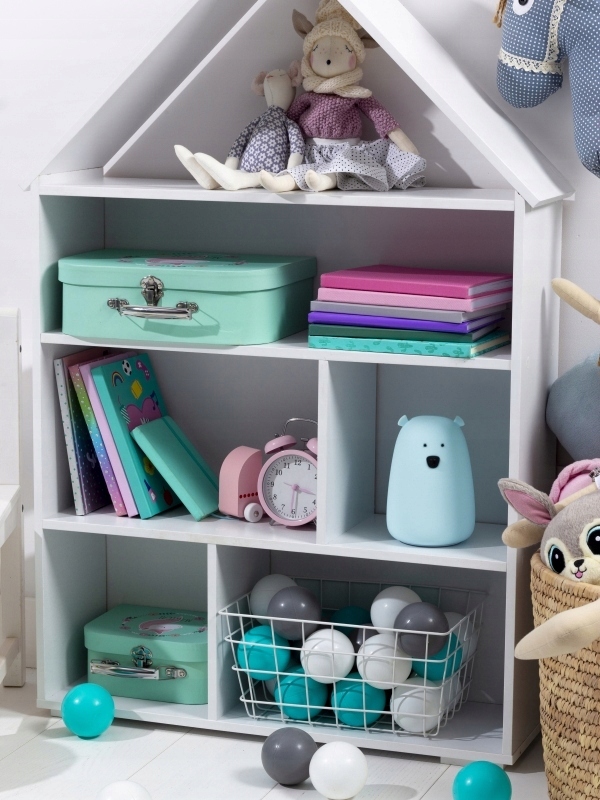 Красива біла книжкова шафа - це чудова меблі для дитячої кімнати . Полиці, що відповідають розміру іграшок вашого малюка, дозволять вам вивчити порядок та надати інтер'єру унікальний персонаж.