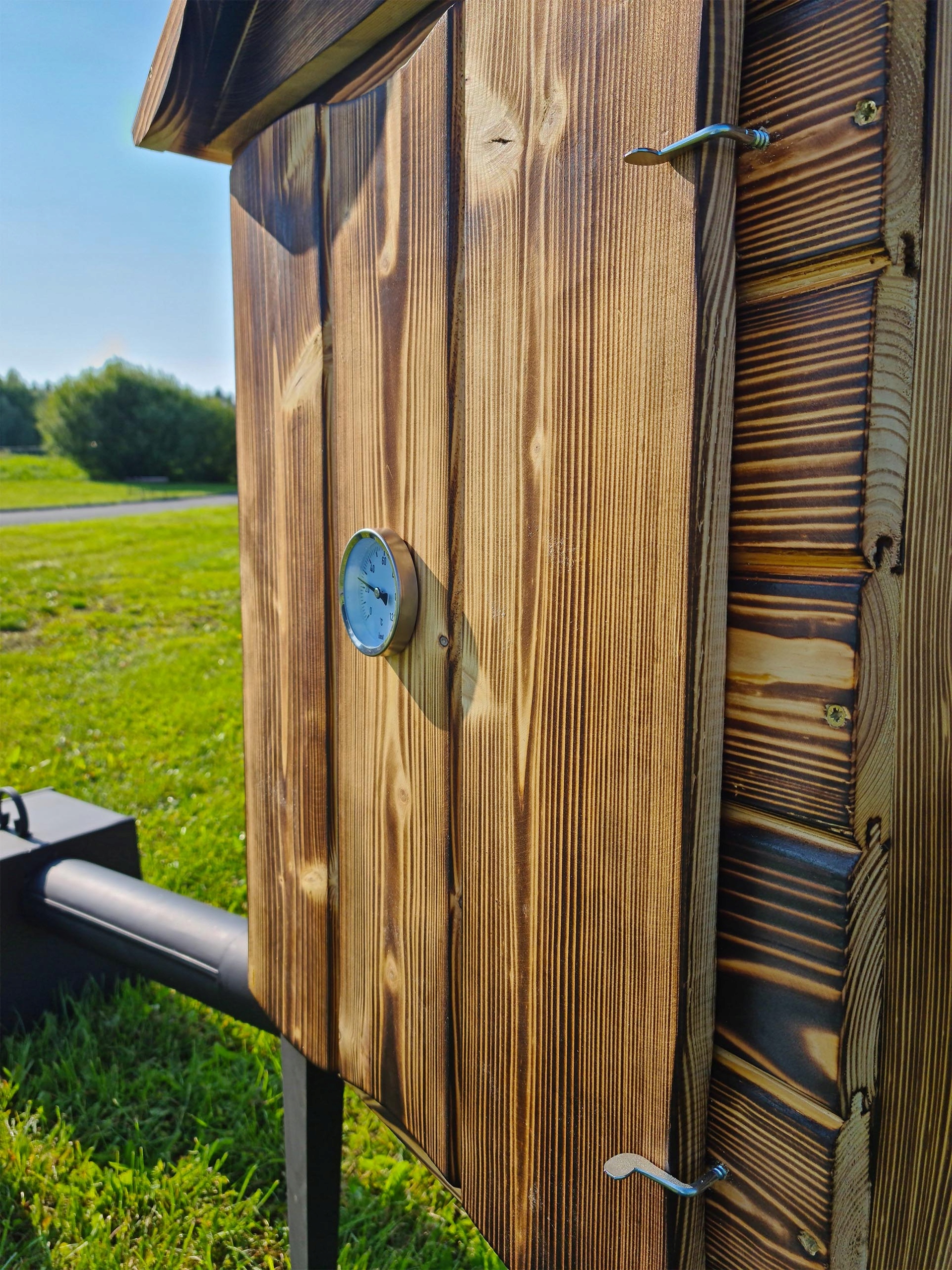 А загальний шарм нашої коптильні доповнюють естетичні кришки на даху, які є не тільки привабливою прикрасою, а й захищають камеру від крапельного дощу.