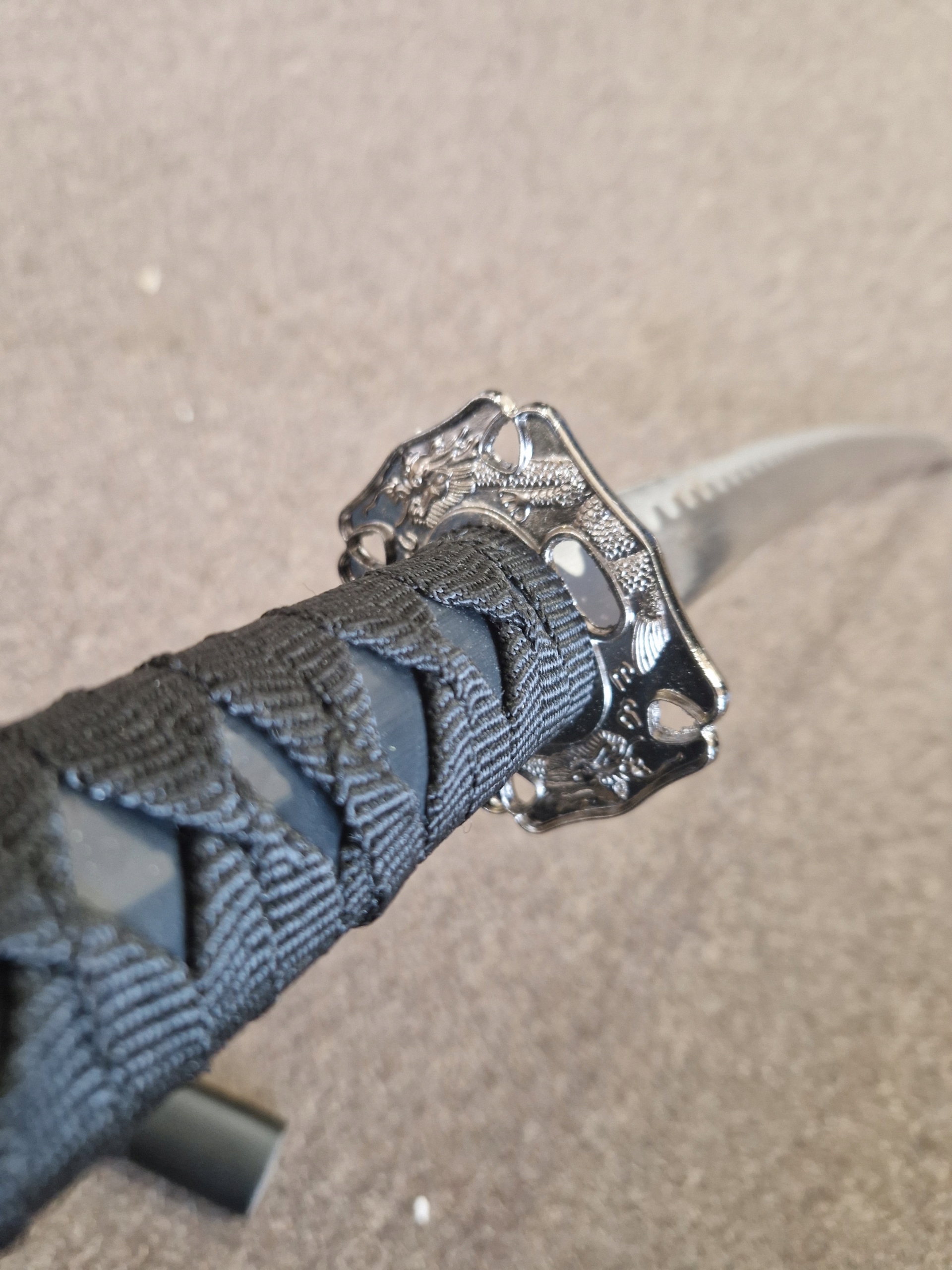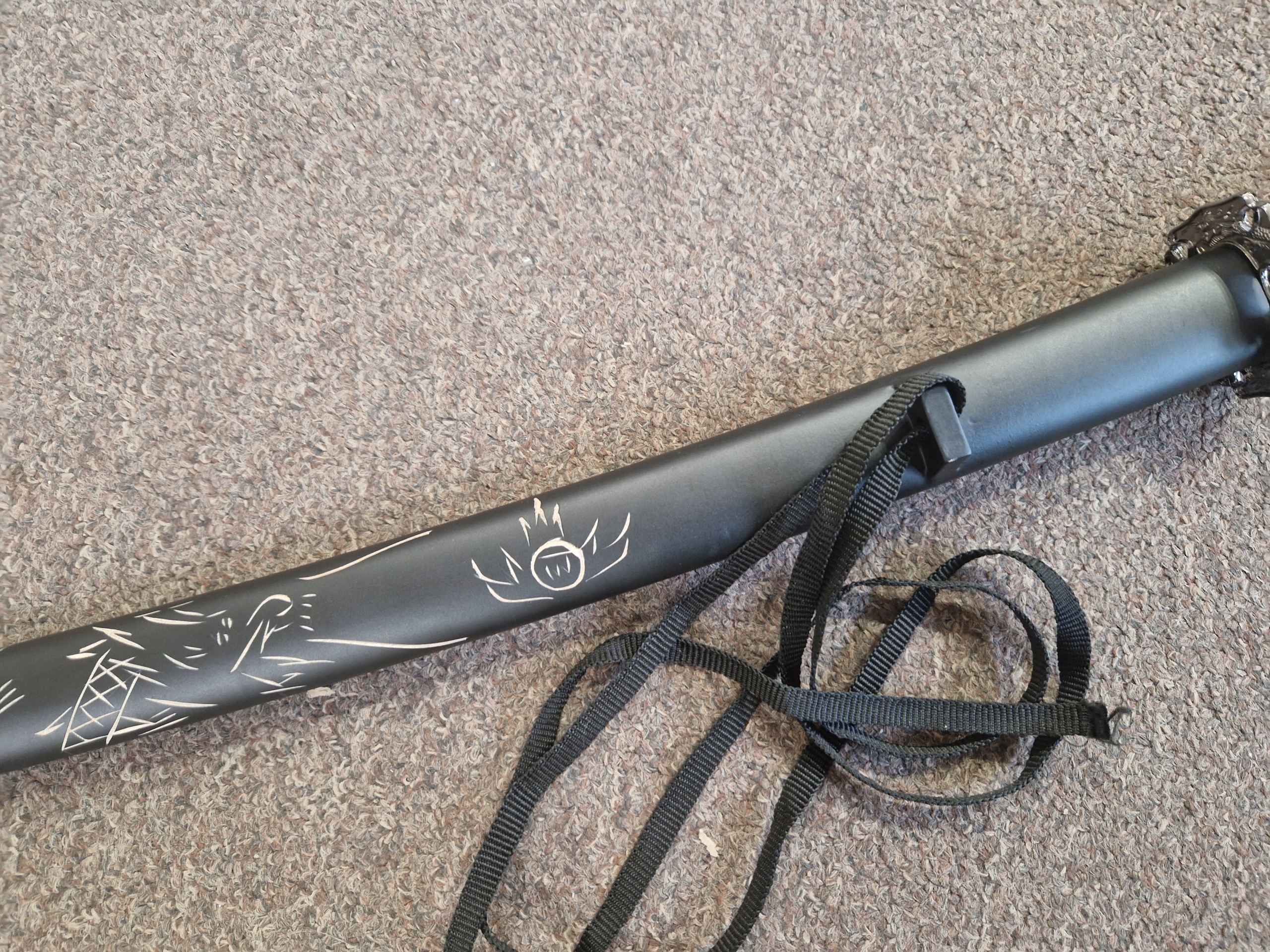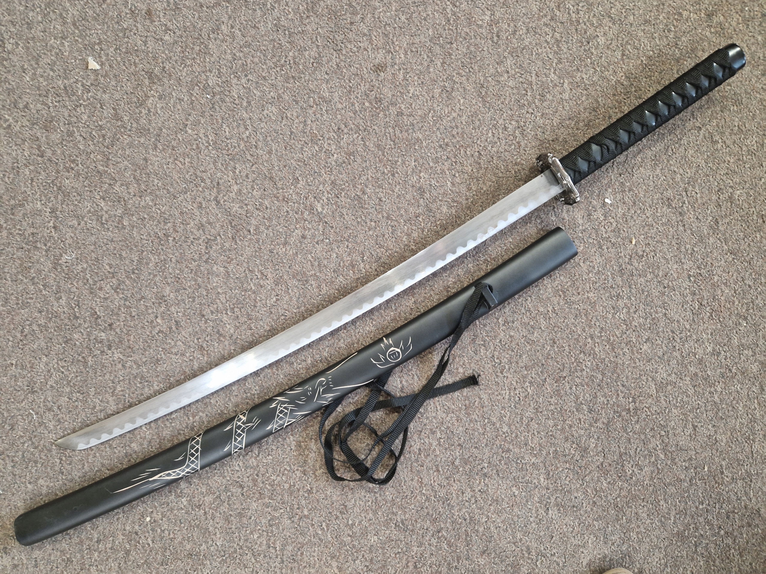 НОЖНИ/ САЯ: тверда деревина - лаковане бавовняне плетіння (сагео) - ручне гравіювання з мотивом дракона