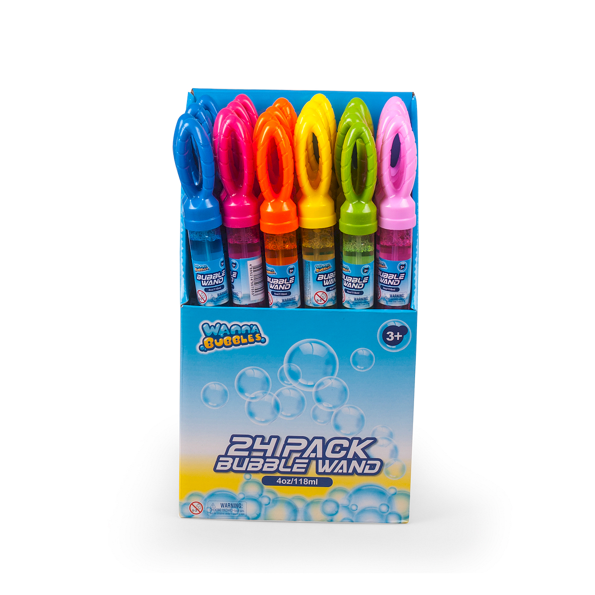Контейнер наповнений безбарвною рідиною милом із спеціальною палицею для звільнення бульбашок. Після населення ви можете дути або махати, щоб зробити красиві, барвисті бульбашки.