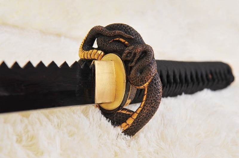ЯПОНСЬКИЙ МЕЧ САМУРАЙСЬКОГО НІНДЗЯ ДЛЯ НАВЧАННЯ, ВИСОКОВУГЛЕЦЕВА СТАЛЬ 1095 ШАРОВИЙ ДАМАСК ЧОРНИЙ, ПИЛА R891