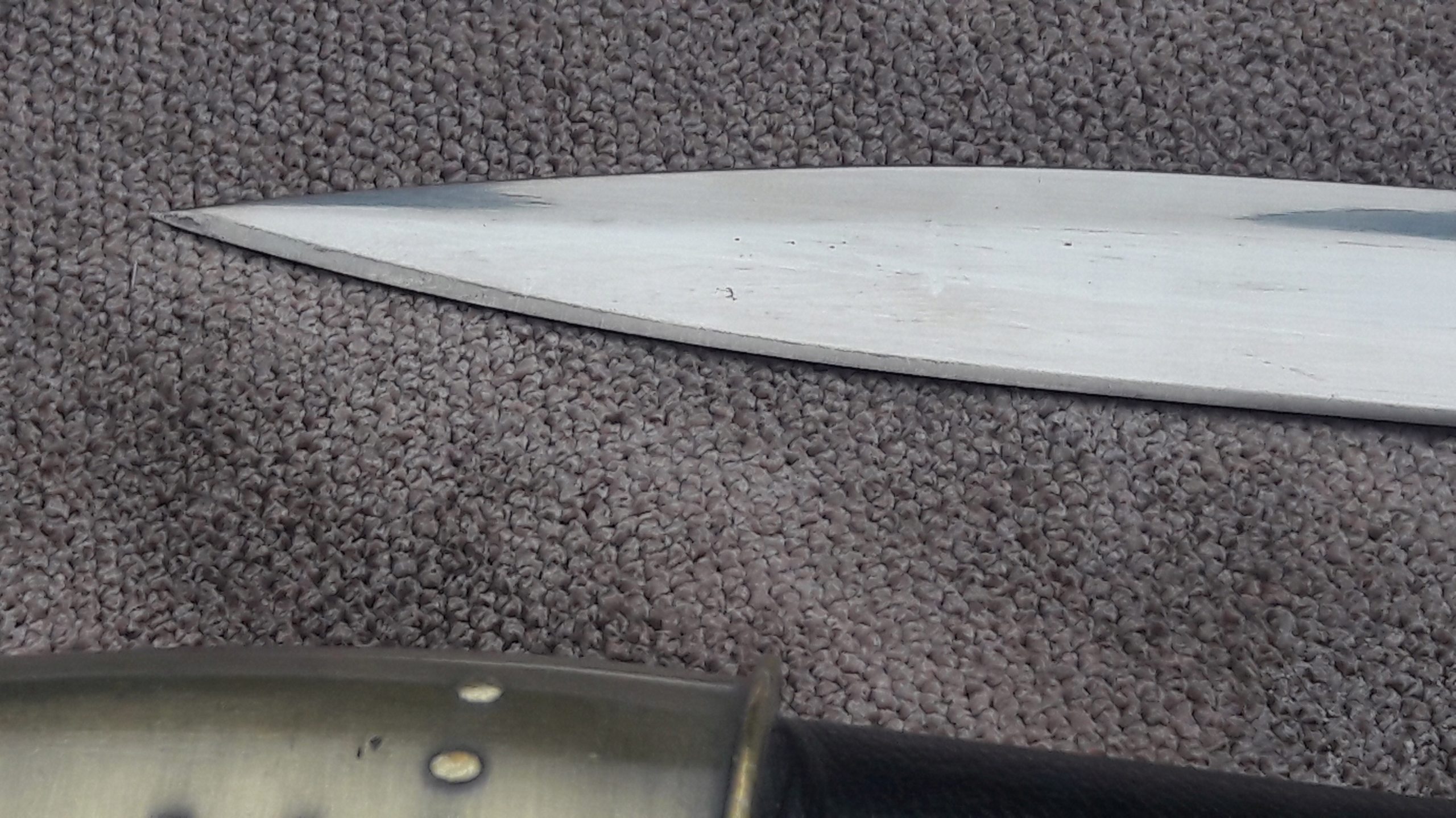 Клинок - нержавіюча сталь, гладкий з обох сторін. Лезо гостре з обох сторін. Клинок також гострий.