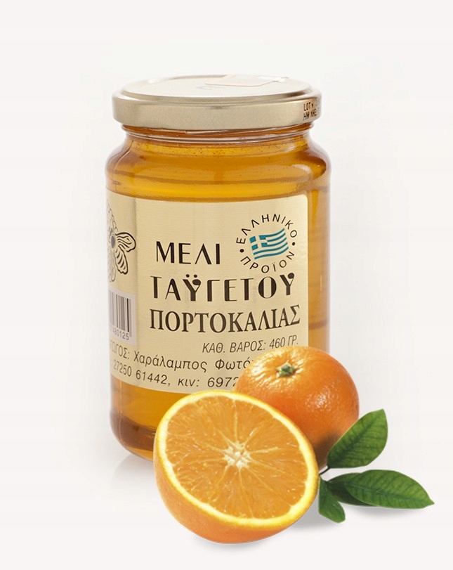 Апельсиновий мед виробляється в Греції як місцевий продукт сімейною бджільницькою компанією Fotopoulos "Meli Taygetos", яка складається з багатьох поколінь.