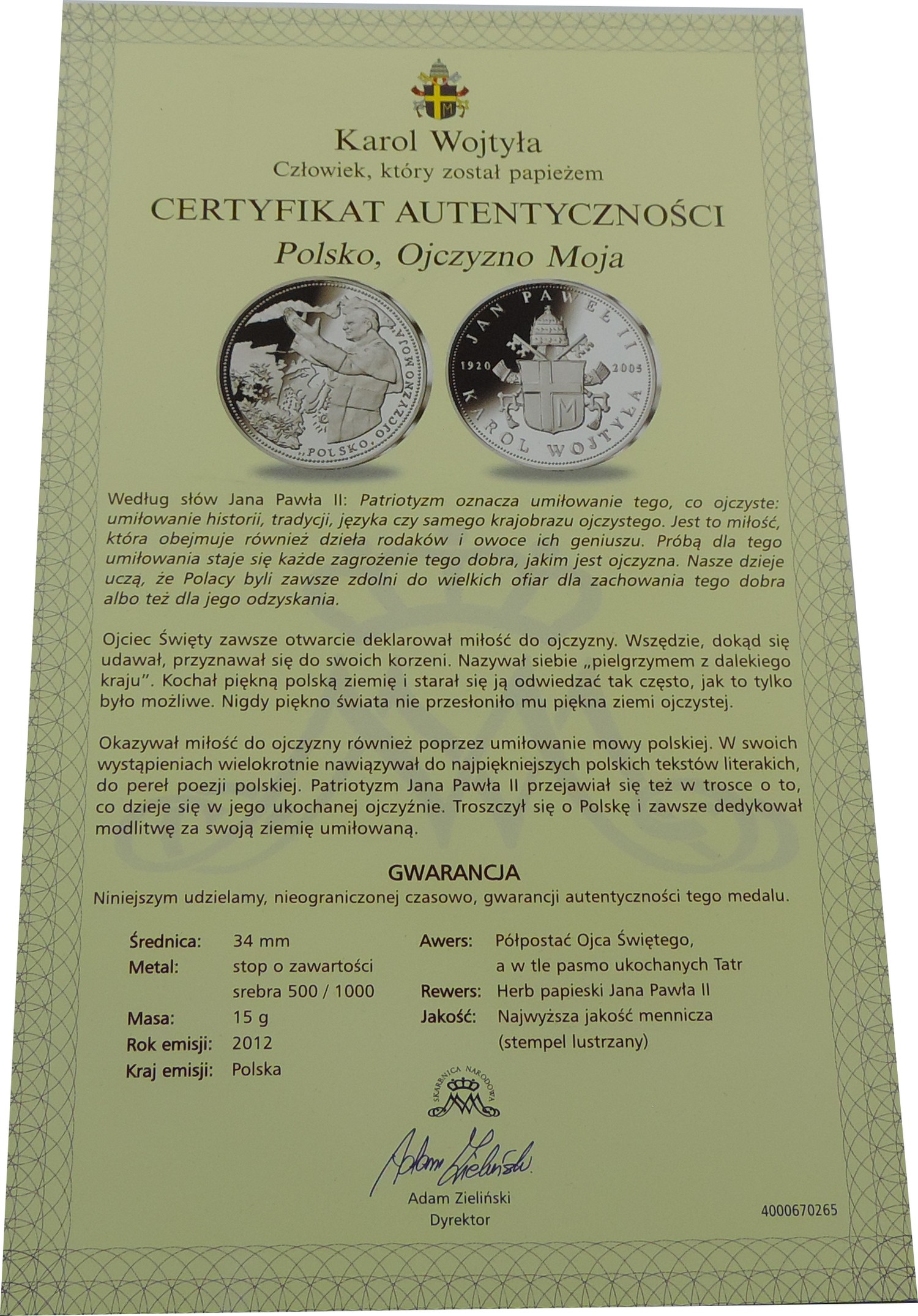 Оплачивая «МЕДАЛЬ - МОНЕТА - НУМИЗМАТ - ИОАНН ПАВЕЛ II - Ag500 - СЕРЕБРО -OY8190», вы можете быть уверены, что данное изделие из каталога «Тематические» будет доставлено из Польши и проверено на целостность. В цене товара, указанной на сайте, учтена доставка из Польши. Внимание!!! Товары для Евросоюза, согласно законодательству стран Евросоюза, могут отличаться упаковкой или наполнением.