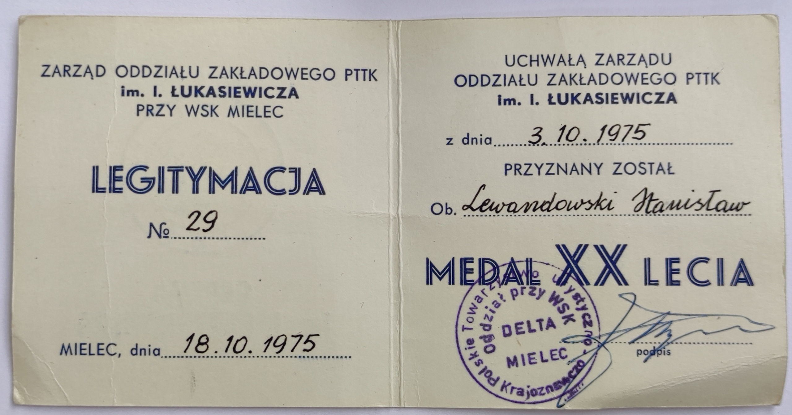 Медаль 20 -ї річниці Лукасевича WSK Mielec.