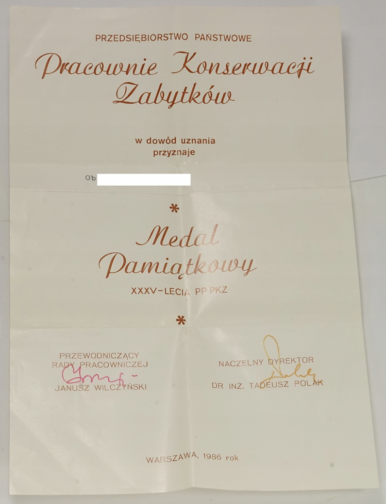 Оплачивая «Медаль XXXV лет ПКЗ 1951 - 1986 Мастерские по консервации памятников Награждение делом», вы можете быть уверены, что данное изделие из каталога «Медали» будет доставлено из Польши и проверено на целостность. В цене товара, указанной на сайте, учтена доставка из Польши. Внимание!!! Товары для Евросоюза, согласно законодательству стран Евросоюза, могут отличаться упаковкой или наполнением.