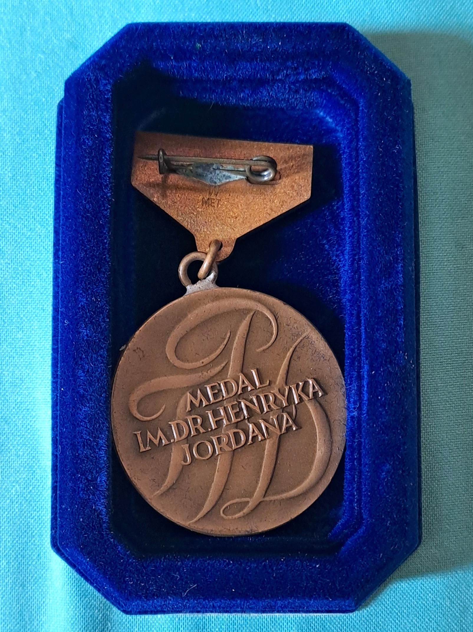 Відзнака присуджується Товариством друзів дітей (ТДД) за особливі заслуги у розвитку охорони здоров'я та популяризації фізичної культури серед дітей і підлітків. Відзнака — кругла бронзова медаль діаметром 31 мм. На аверсі зображено бюст д-ра. Генрика Йордана, на реверсі монограма ТПД з написом у три рядки: «МЕДАЛЬ – ІМ. DR. HENRYKA – JORDAN Синя металева підвіска з білою широкою вертикальною смугою посередині, розміром 24 х 17 мм.