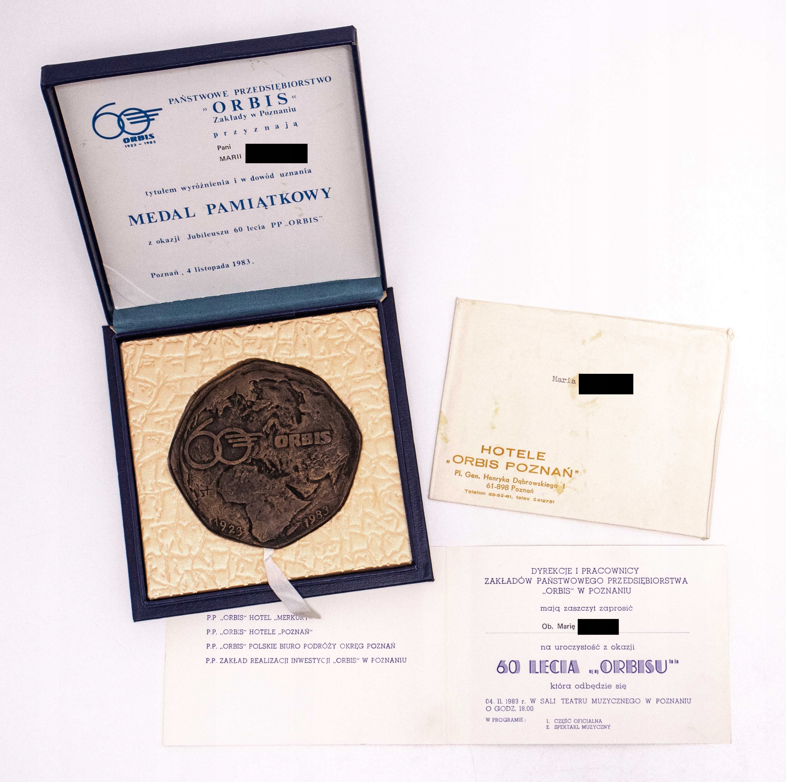 МЕДАЛЬ СТАСІНСЬКОГО - 60 РОКІВ ORBIS POZNAŃ 1983 + ЗАПРОШЕННЯ