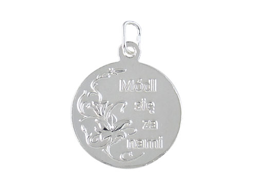 Великий срібний медальйон із зображенням Падре Піо та написом «St. Padre Pio». На реверсі є заклик «Моліться за нас».