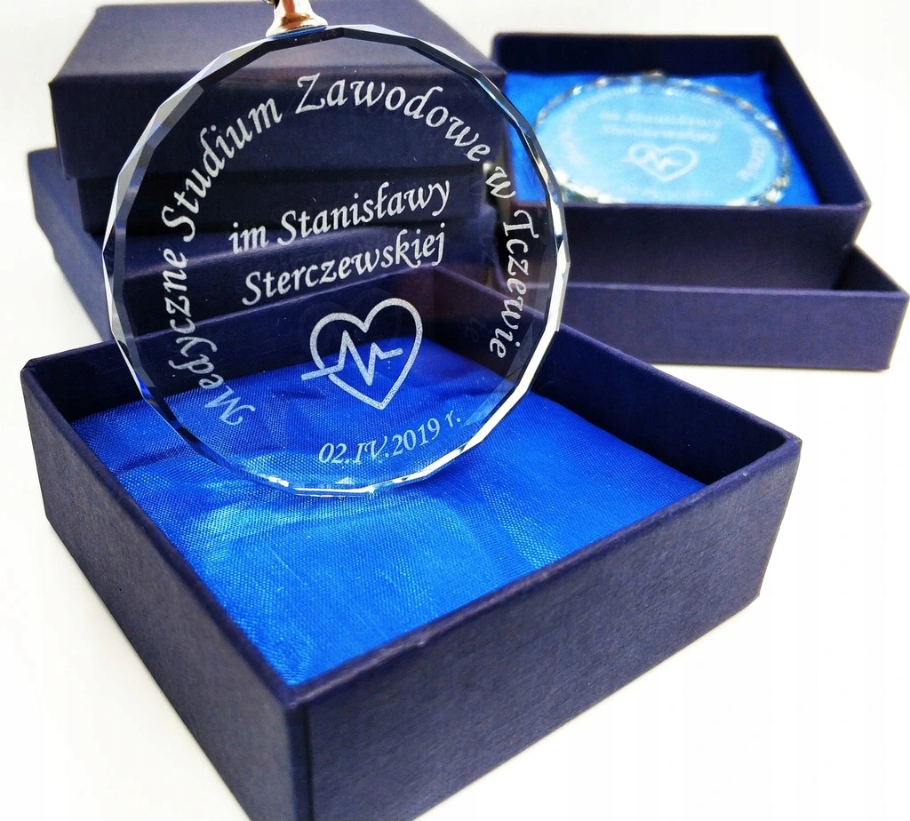MEDAL SZKLANY OKRĄGŁY + GRAWER