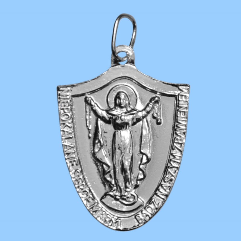 На реверсі медалі зображено Непорочне Серце Марії. У правій руці Богородиця тримає Святу Вервицю, яка є спасінням для кожного, потужною зброєю проти пекла та надзвичайно ефективним засобом освячення душі.