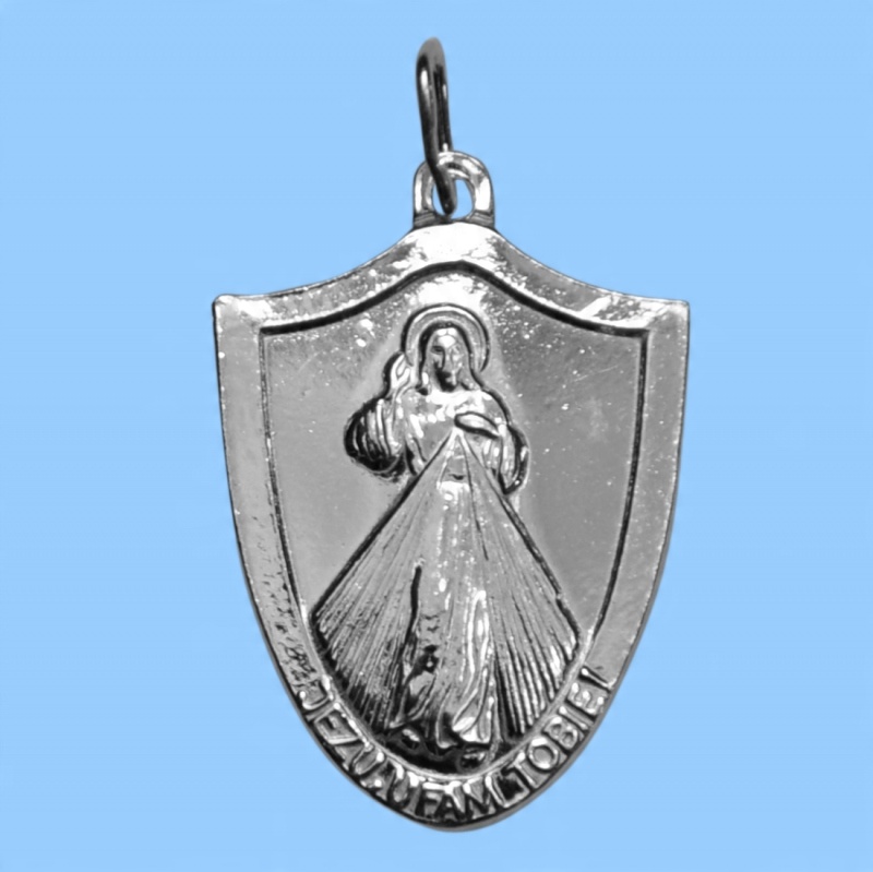 На аверсі медальйона розміщено образ Ісуса Милосердного з написом «Ісусе, довіряю Тобі». Господь Ісус хоче, щоб Йому поклонялися в цьому образі. обіцяє св. Фаустини, що душа, яка поклониться цьому образу, не загине, а вже на землі і в годину смерті переможе своїх ворогів. Господь Ісус захищатиме це як Свою славу. Це посудина, з якою ми маємо прийти по ласки до Джерела Милосердя.