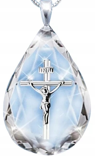 Медальйон зі срібним кришталем INRI Хрест із сльозою Ісус Христос