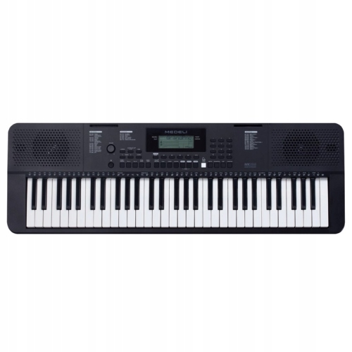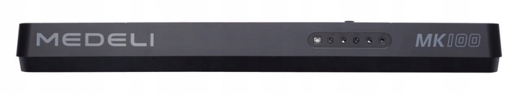 Клавіатура Medela MK 100 має: 61 клавішу (динамічна клавіатура з 3 режимами налаштування чутливості). Дисплей: LCD. Поліфонія: 64 голоси. Звуки: 480. Стилі: 160. Вхід для мікрофона: 6,3 мм гніздо. Додатковий вхід. Вхід для додаткової педалі сустейну. Midi через USB. Загальні навушники і головний вихід. Процесор DSP з ефектами реверберації та хоруса. Музична бібліотека зі 140 попередньо завантаженими піснями та системою уроків. Може працювати від батарейок 6xAA. Розміри: 946 x 316 x 101 мм. Вага: 4 кг. Прилад також включає: спеціальне джерело живлення, робочий стіл та інструкцію з експлуатації польською мовою.