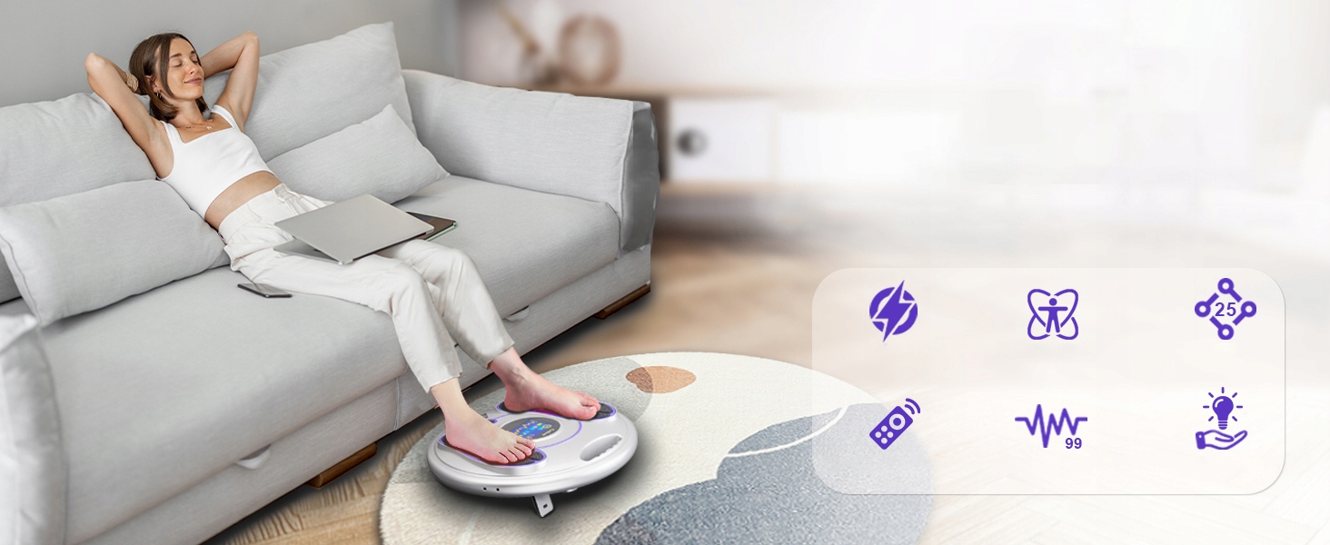 - EMS-терапія стимулює м’язи та нерви стоп, допомагаючи полегшити втоми, покращують кровообіг, зменшують біль і зміцнюють м'язи.