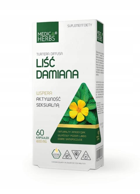 Даміан (дифус Тернера) використовується як природний афродизіак. Він підтримує правильну сексуальну життєву силу як чоловіків, так і жінок. Це допомагає підтримувати добре, особливо в ситуаціях стресу та нервової напруги. Лист Даміана також підтримує належну психічну та когнітивну діяльність. Крім того, він підтримує підтримку адекватного рівня цукру в крові.