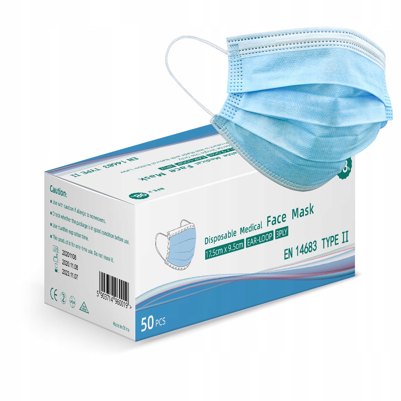 МЕДИЧНА ХІРУРГІЧНА ЗАХИСНА МАСКА 50 ШТ.