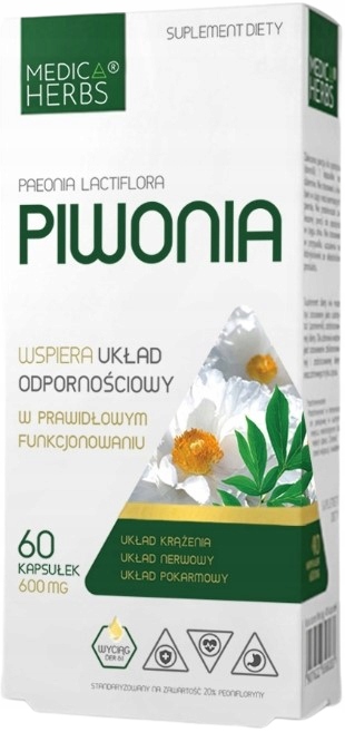 - 60 Капсули перетворюється на рекомендовану частину для споживання протягом дня - 3 капсули): екстракт кореня лактіфлори Paeonia 1800 мг (360 мг пеоніфлуорін); Jellytin (капсула). Підтримує належне функціонування, серед інших суглоби, травна, серцево -судинна та нервова система. Крім того, продукт заспокоює симптоми, пов'язані з менопаузою. Не перевищуйте рекомендовану порцію для споживання протягом дня. Не використовуйте у випадку алергії на будь -який з інгредієнтів продукту. Дієтична добавка не може бути використана як замінник (заміна) різноманітної дієти. Збалансована дієта та здоровий спосіб життя рекомендуються. Захистити від вологи та світла.