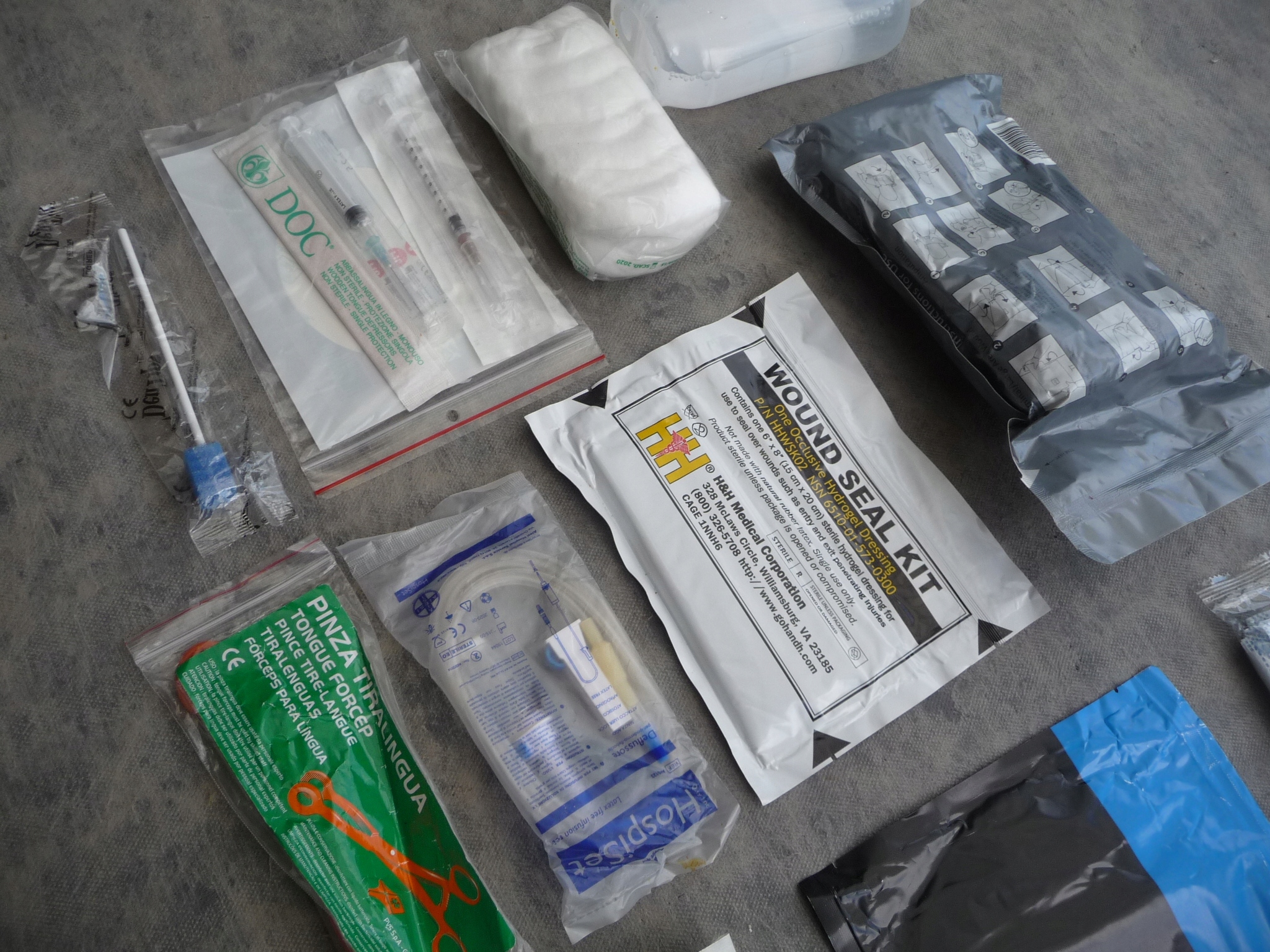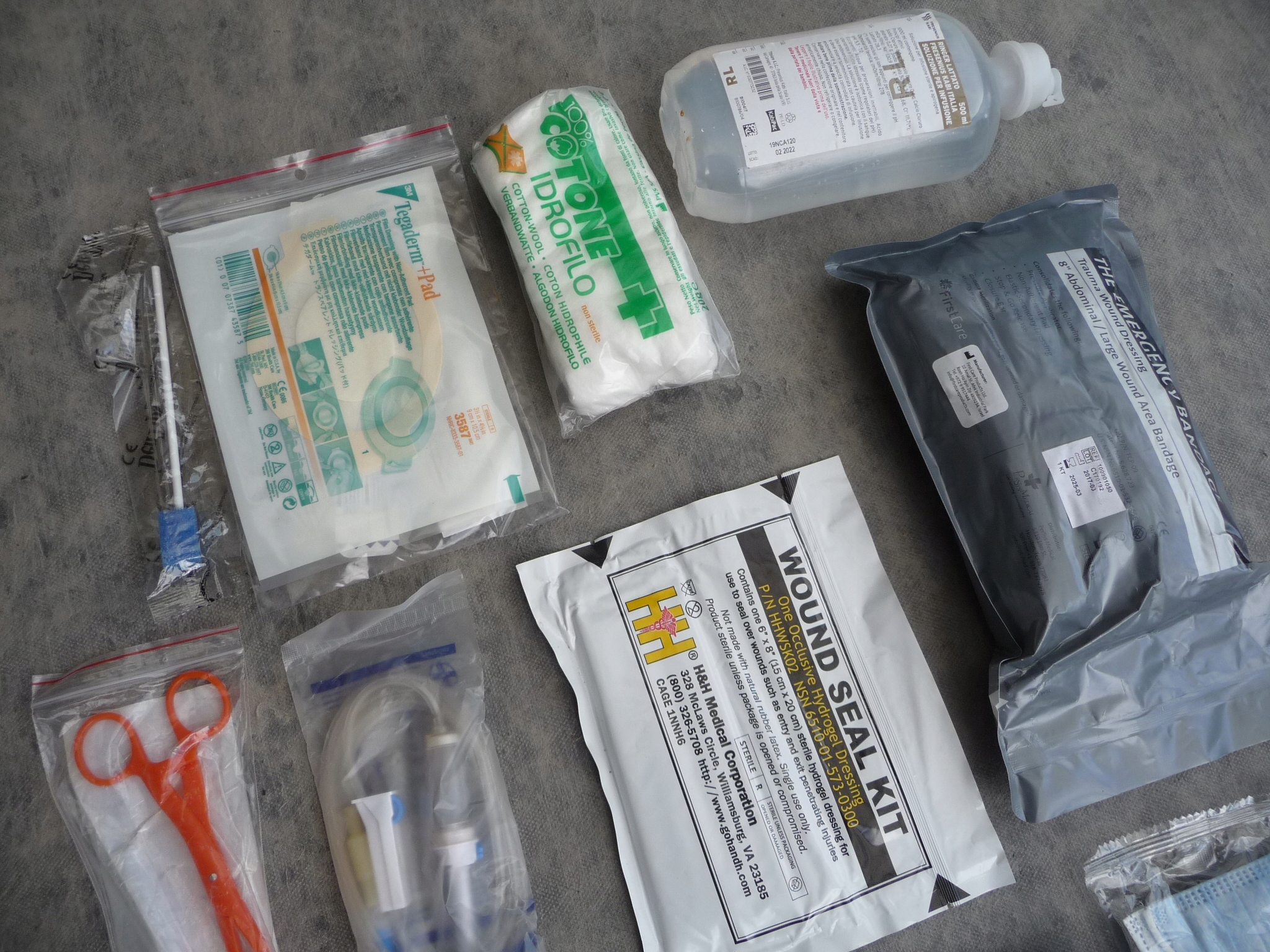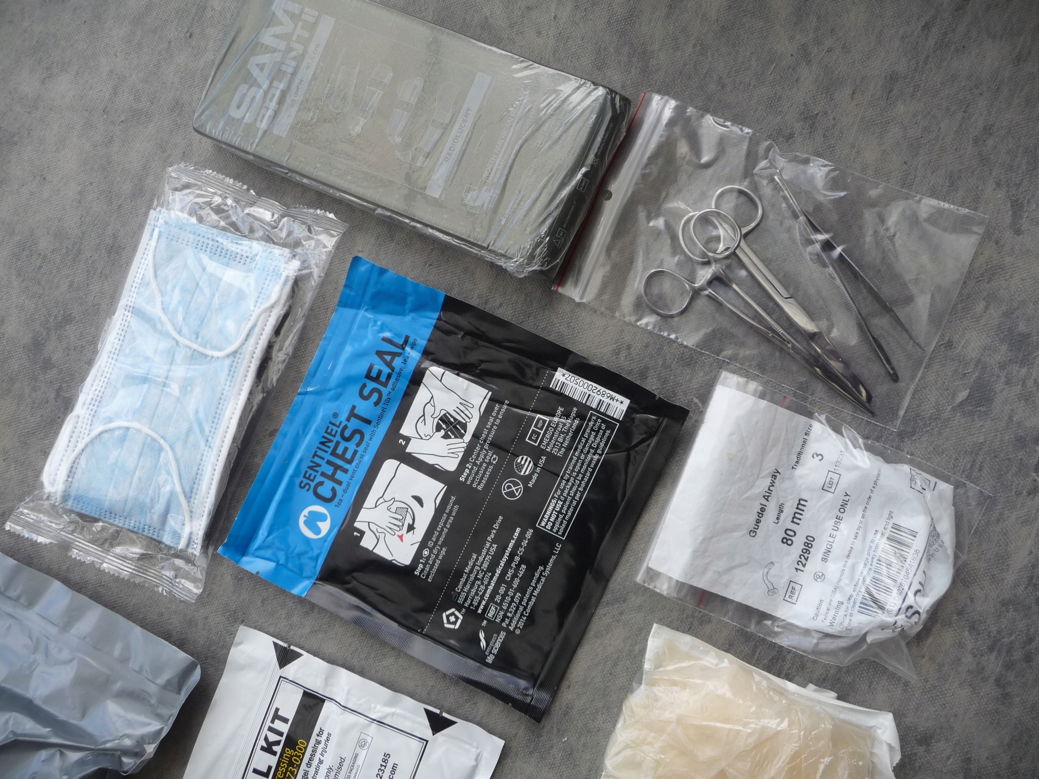 Включає ремінь для перенесення та медичне приладдя, видиме на фотографіях