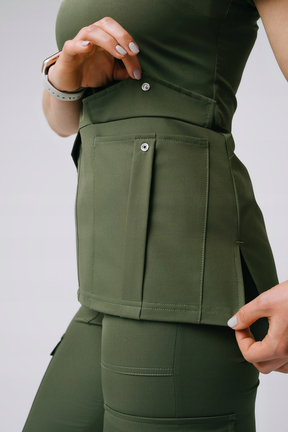 Медична толстовка, виготовлена з течії, гнучких у чотирьох напрямках матеріал. Дуже ретельно закінчено декольте в букві V. Вони знаходять на плечах декоративні кнопки з кокосовою кнопкою. Кнопки кокосового горіха, які ми використовували, є Водяний стійкий і не фарбуйте. Толстовка має дві бойові кишені, кріплені На невидимі тиски ззовні. З боків є тріщини з болтами, які збільшують комфорт носіння. На грудях і на задній частині толстовки Ми використовували моделювання ударів. Толстовка з набору ETNA.