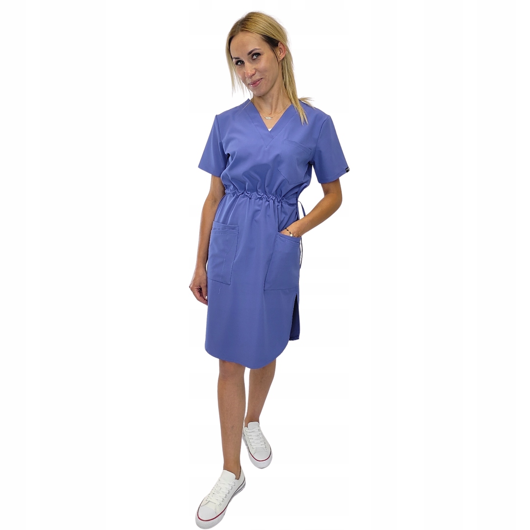 Сукня має 5 функціональних кишень. Приталений крій одягу з невеликою лінією талії виглядає надзвичайно стильно - кращій посадці сприяють зав'язки, завдяки яким сукня краще регулюється. V-подібний виріз. Бічні розрізи внизу збільшують діапазон рухів.