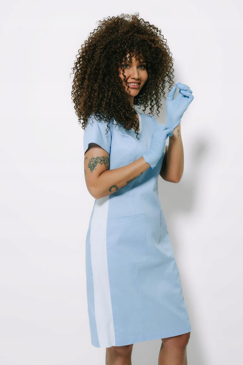 О Виріб: Медичний одяг Клара+/преміумвиготовляється з гнучкого, міцний матеріал з високим вмістом бавовняних переплетень. Якщо ви цінуєте якість і вам подобається, як сукня виглядає як нова після тривалого використання ви прийшли в потрібне місце! Ми вже використовуємо еластичний матеріал цього медичного халату в наших лікувальних скрабах моделі «Лєна» і «Соня». Ви точно можете носити сукню прати при 60℃. Це дуже зручний крій простого, класичного декорованого плаття болти на кожній кишені та мушка, що, крім додання шарму, посилює його виробу, додатково в боки сукні та горловини вшиті трикотажні смужки, завдяки яка сукня медичний простий і гнучкий.
