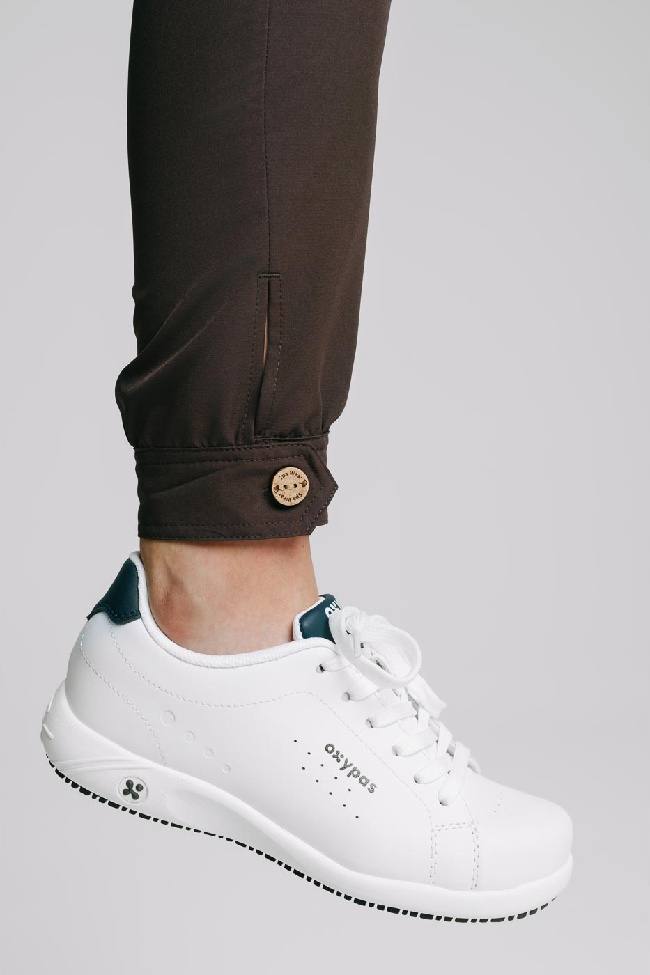 Про товар: Медичні штани з текучий матеріал, гнучкий у чотирьох напрямках. На талії є еластична гумка, прошита в трьох місцях, щоб не рвалася і не перекручувалась. Спереду дві накладні кишені, з боків дві накладні кишені, які застібаються зовні на невидиму кнопку. Низ брюк ми обробили манжетом з погонами та кокосовим ґудзиком. Кокосові ґудзики, які ми використали, водостійкі та не фарбуються. Щоб якомога легше вставити ніжку, ми використали тріщину, яка закінчується болтом.