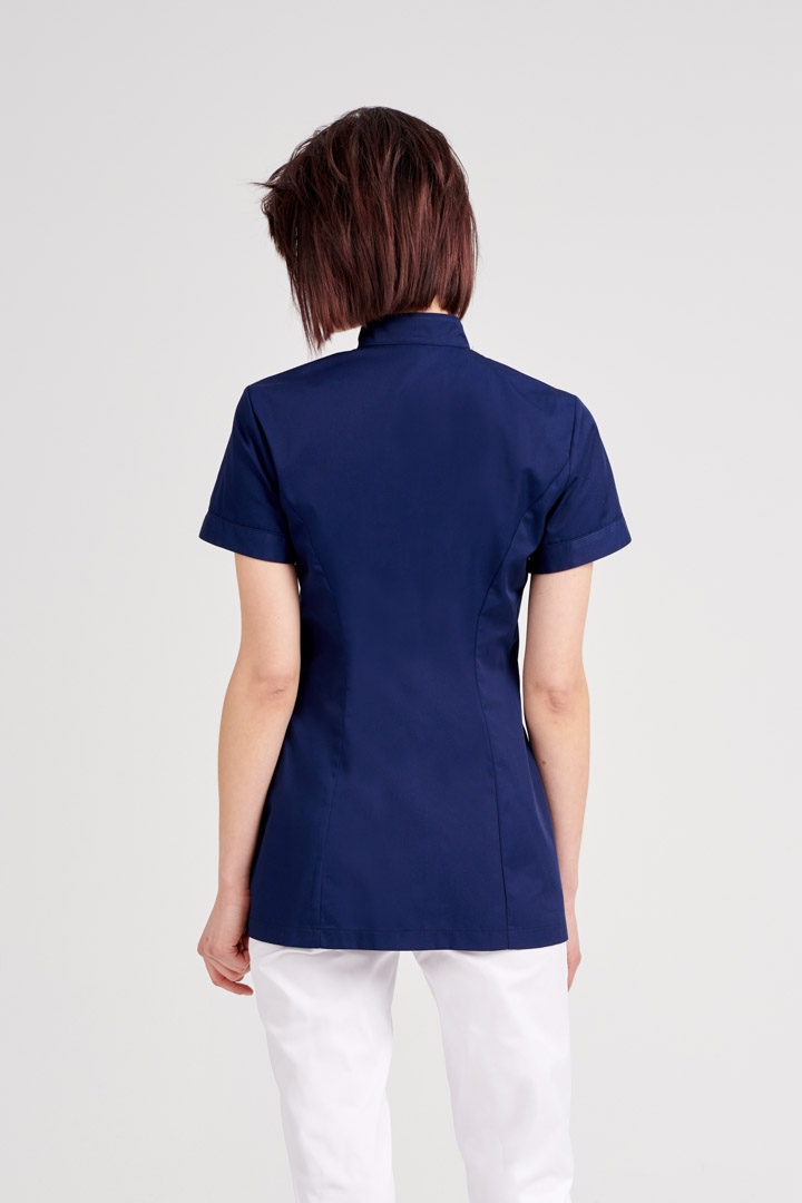 Про товар: Фартух з міцного матеріалу, застібається для знімків. Приталений, приталений крій підкреслює фігуру. Фартух з шортами рукава і комір-стійка. Дві великі кишені, розташовані на передній частині блузи. Класика в сучасне видання.
