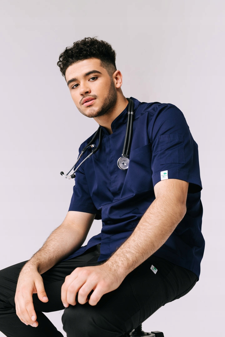 Світшот чоловічий медичний костюм Kuba - це костюм, створений для лікарів, які шукають елегантний, класичний робочий костюм. Косметичка з коміром-стійкою застібається на блискавку практичні застібки та виготовлені з високоякісного, міцного матеріалу. Фартух Медична сумка має цілих чотири зручних кишені, три з яких необхідні для повсякденної роботи на передній частині форми і один на рукаві. Моделі оброблені для візуального ефекту декоративне оздоблення.