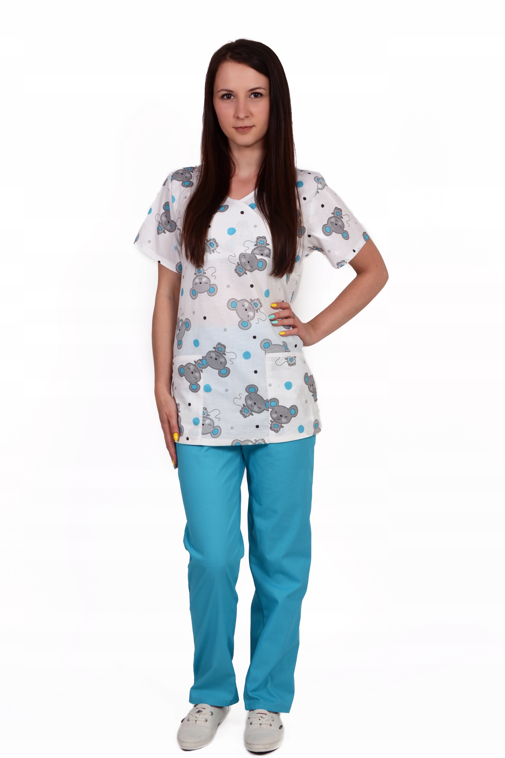 Світшот з перекриваючим V-подібним вирізом, короткими рукавами. Дві нижні місткі кишені. Класичні брюки, з поясом і на ґудзику з ворсом і польотом.