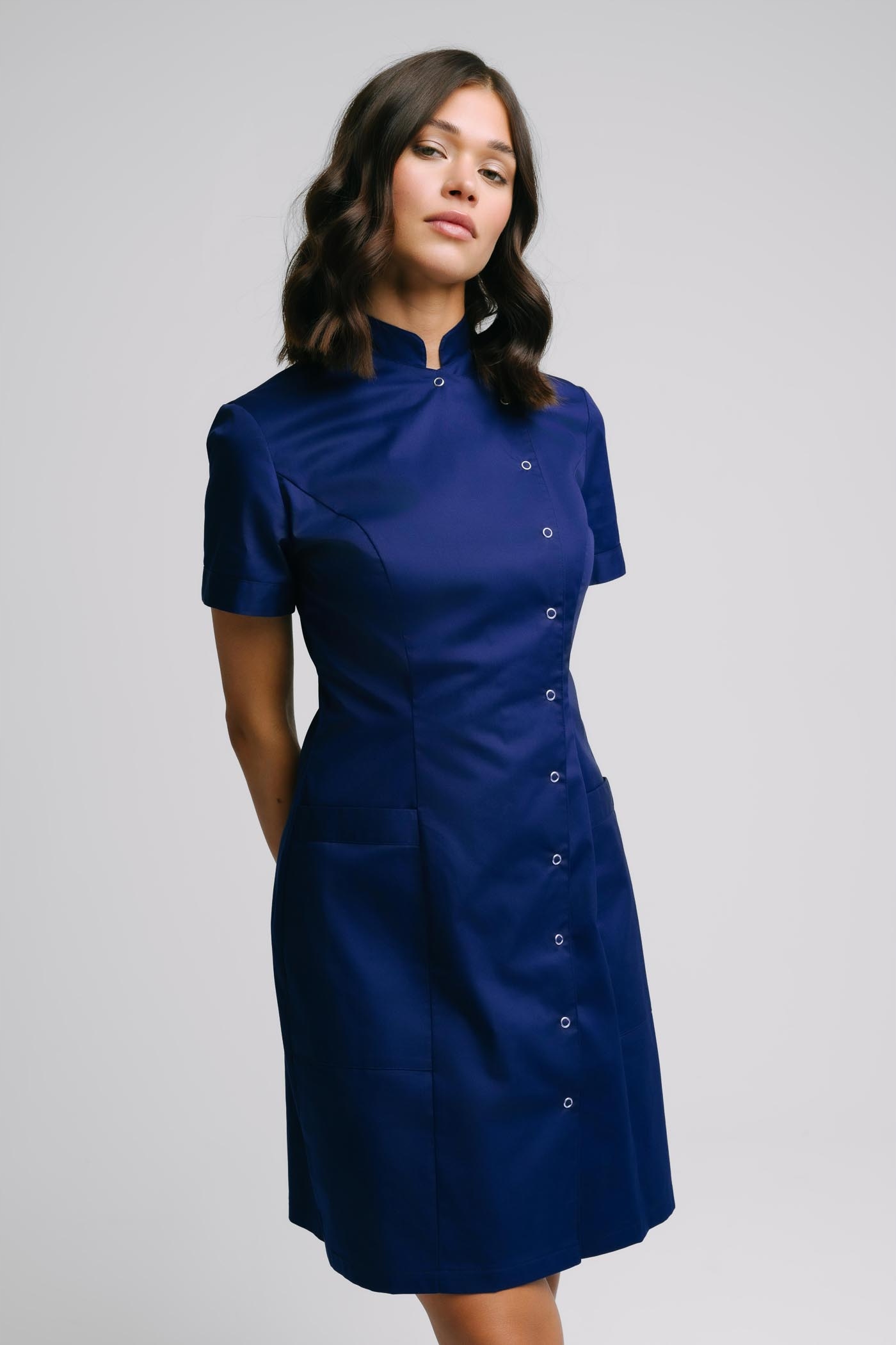 Ой товар: Довгий медичний халат Іга premium/+ виготовлено з гнучкого, міцного матеріалу матеріал з високим вмістом бавовняних переплетень. Наряд застібається на шию ідеальне рішення для жінок, які цінують комфорт і витонченість. Версія Преміальна модель цієї моделі, перш за все, гнучка, вона має два великих кишені, комір-стійка, застібається на кнопки. Ви можете легко випрати сукню при 60 ℃. Ми вже використовуємо гнучкий матеріал медичного наряду «Іга преміум» в... Наші лікувальні скраби моделі «Лєна» і «Соня» на ваш вибір відповідні скраби.