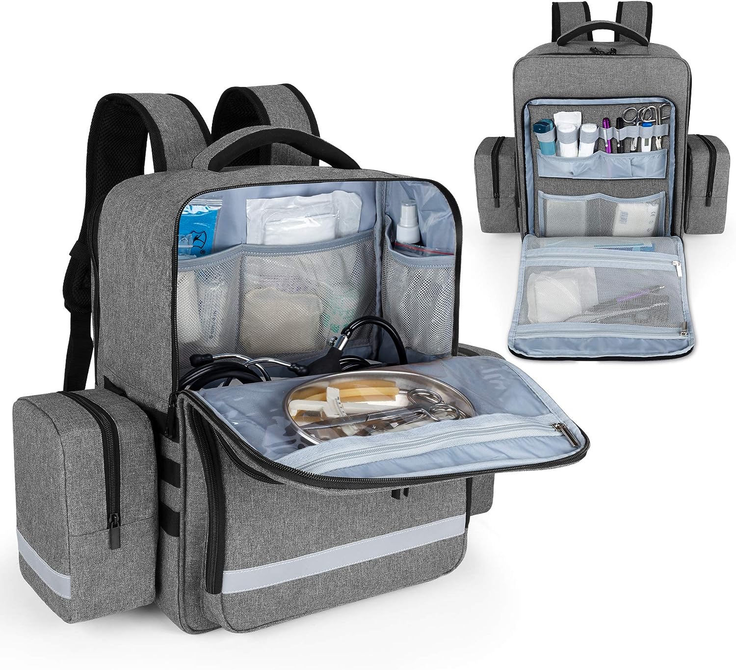Наш чудовий медичний рюкзак для невідкладної допомоги виготовлено з високоякісного нейлону, міцного матеріалу з двосторонньою застібкою-блискавкою та неслизьким дном, яке фіксує медичне приладдя.