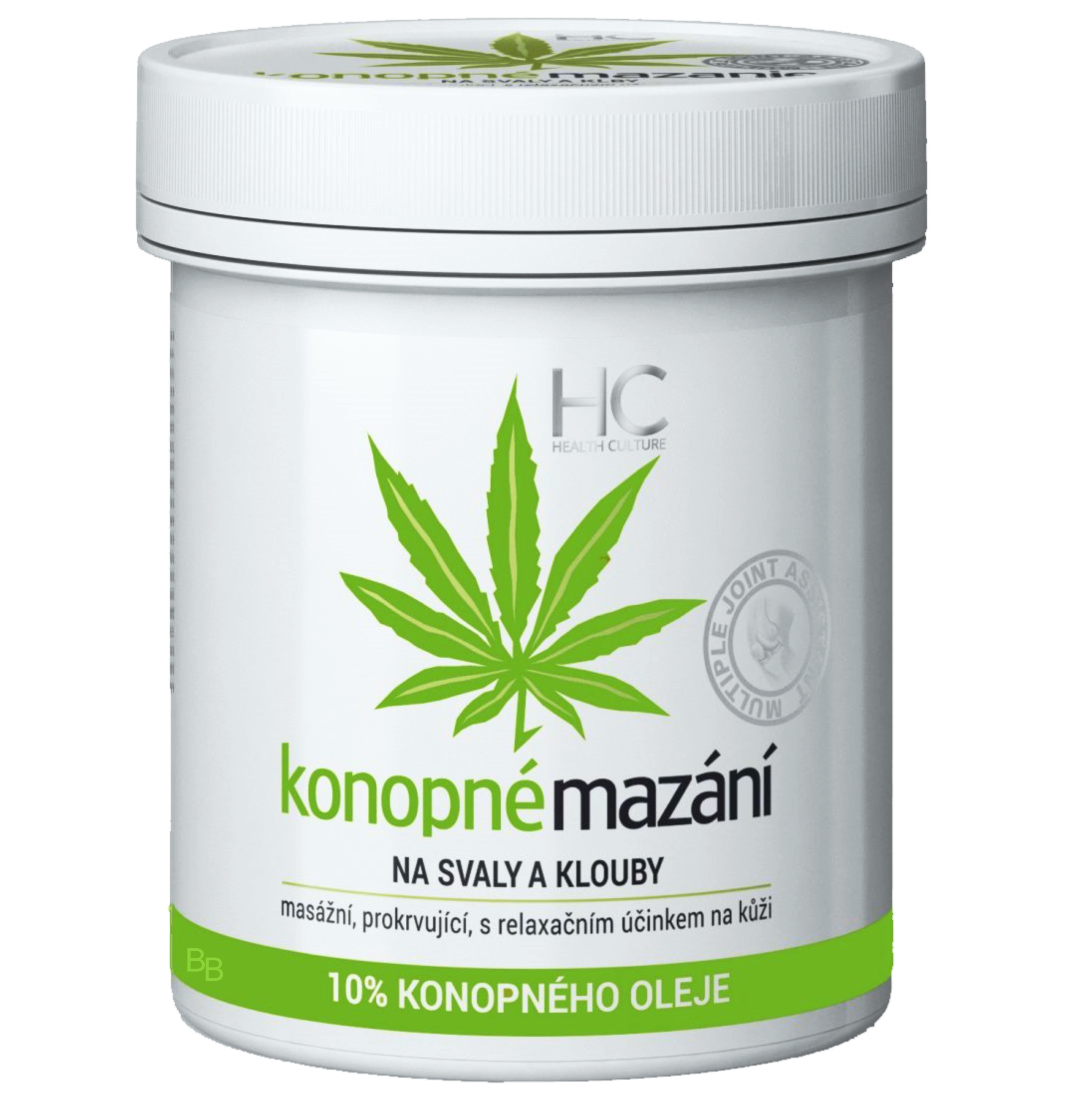Крем, мазь з конопляною олією для масажу шкіри. Активні речовини освіжають і розслаблюють шкіру без подразнень і неприємних почервонінь шкіри. Великою перевагою є вміст конопляної олії, яка має протизапальні та антибактеріальні властивості. Ця конопляна мазь, оцінена роками, швидко вбирається. Після нанесення дає відчуття прохолоди.