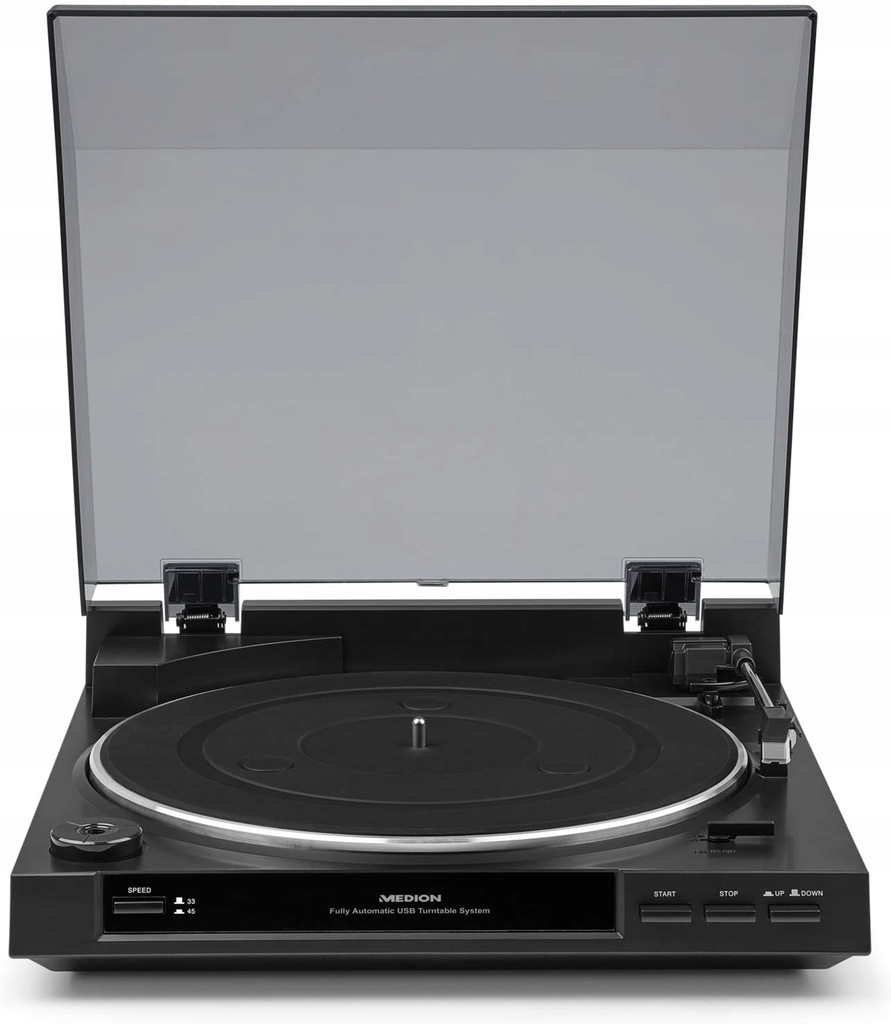 поворотний стіл робить ваше прослуховування музики приємнішою завдяки найважливішим функціям, завдяки якому ви можете повністю розслабитися, прослухавши унікальний звук вінілових записів: рукоятка вертушки автоматично розміщується на тарілці, а пристрій автоматично виявляє, коли альбом був досягнутий і перестає грати без будь -якого втручання з вашого боку. Завдяки побудованому підсилювачі Gramophone ви можете легко підключити Medion Life E65138 до будь -якого аудіо введення.