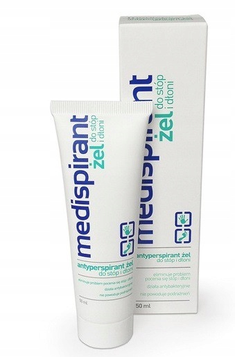 Медіспірант для ніг і рук - професійний гель-антиперспірант без кольору і запаху, який забезпечує ефективний і тривалий захист від пітливості ніг і рук. Завдяки вмісту антибактеріальних компонентів гель Medispirant також допомагає усунути неприємні запахи. Крім того, склад продукту збагачено алантоїном із заспокійливою дією, завдяки чому гель Medispirant не викликає подразнення шкіри.