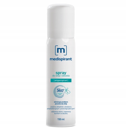 Медіспірант-спрей для ніг і взуття — це спеціалізований антиперспірант, який ефективно та довготривало захищає ноги від надмірного потовиділення та водночас запобігає утворенню неприємного запаху зсередини взуття.